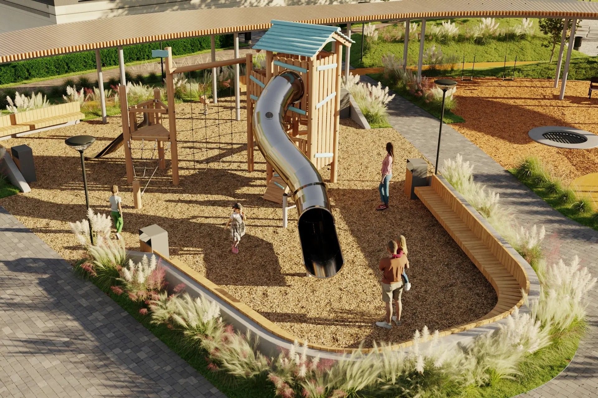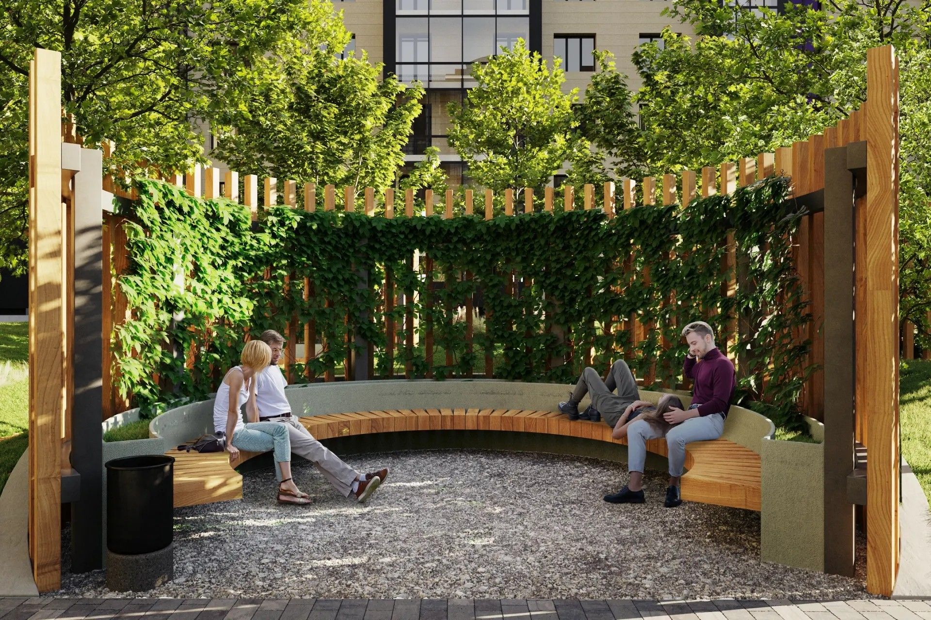 Авторы благоустройства задумали пространство, где природа становится частью повседневности. Всё продумано до мелочей, чтобы каждый день был наполнен комфортом и свежестью.