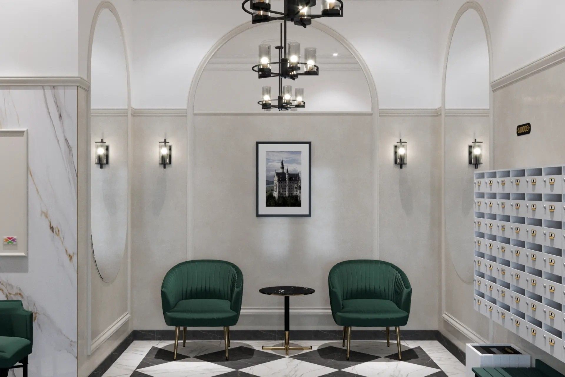 - Профессиональная команда дизайнеров создала интерьеры в духе неоклассики: светлые оттенки, картины, зеркала, акцентные светильники.
