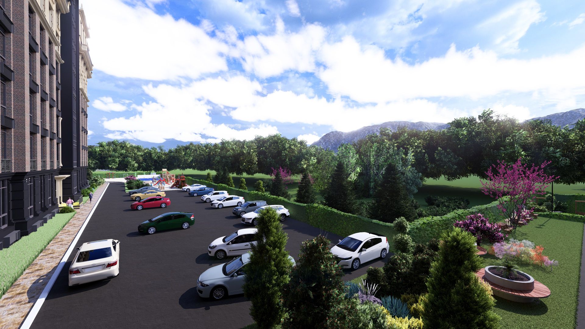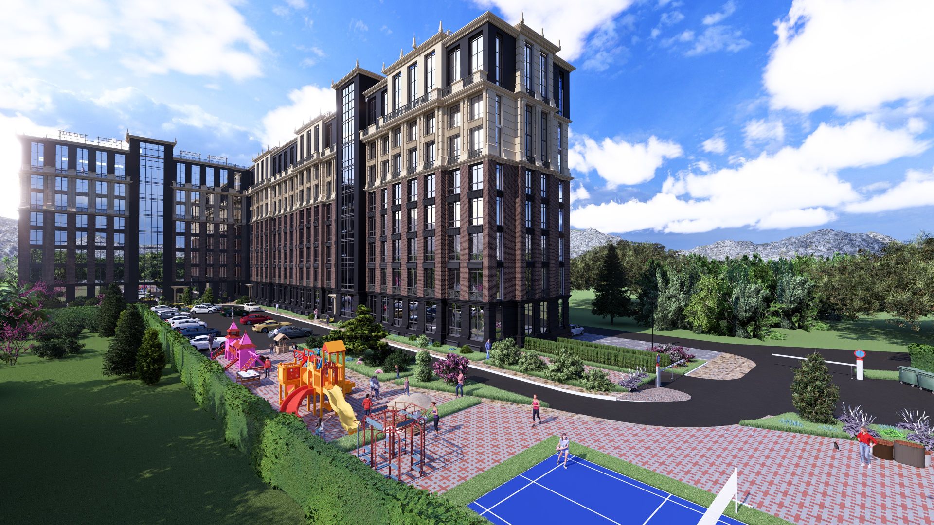 На визуализациях видно, что двор комплекса продуман до мелочей. Здесь гармонично сочетаются зоны для отдыха и активности: