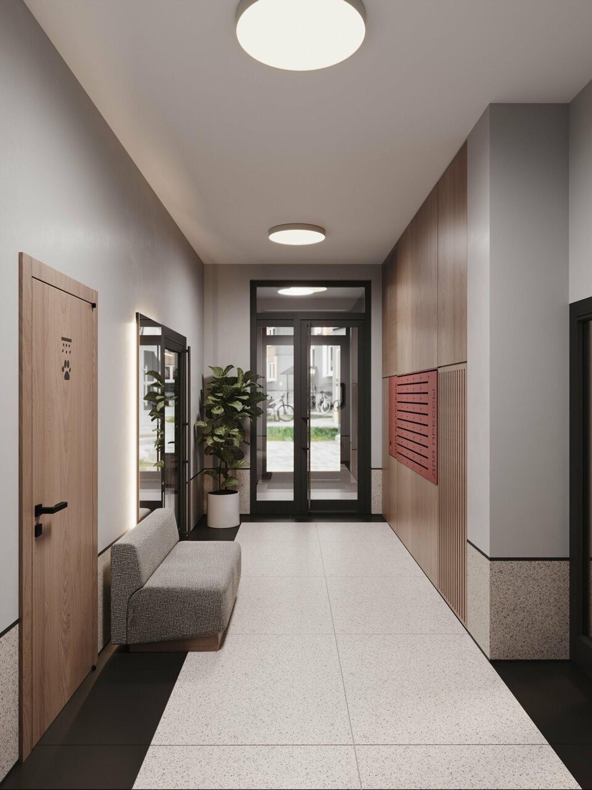 Общедомовые пространства продуманы до деталей — от визуальной части до сценариев повседневного удобства.