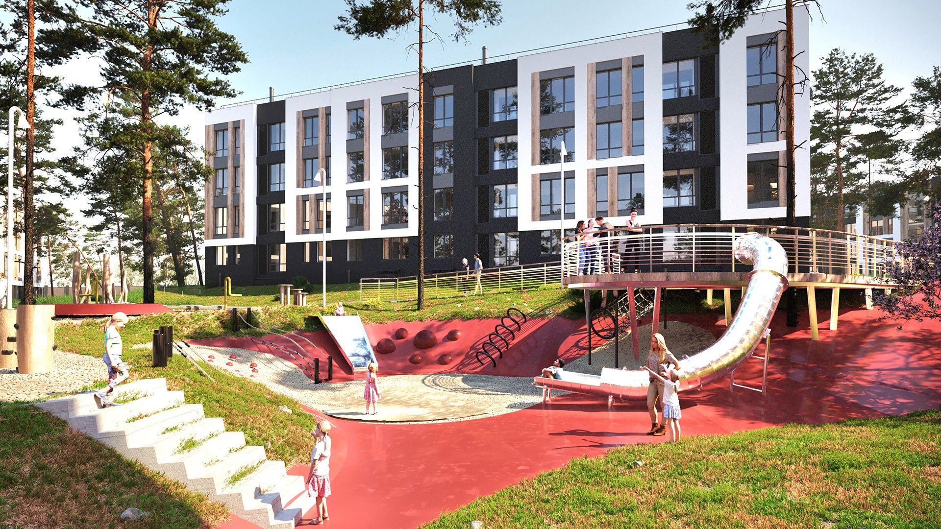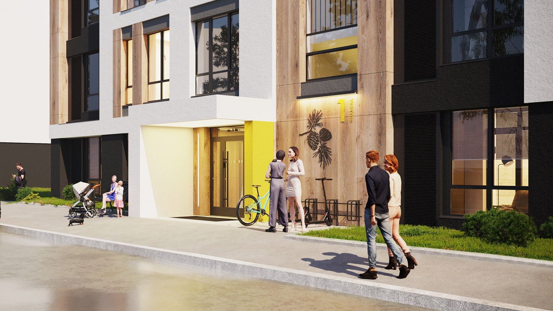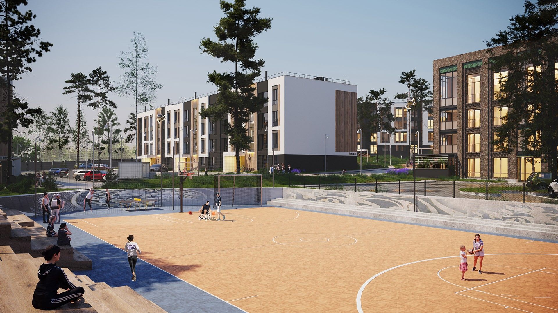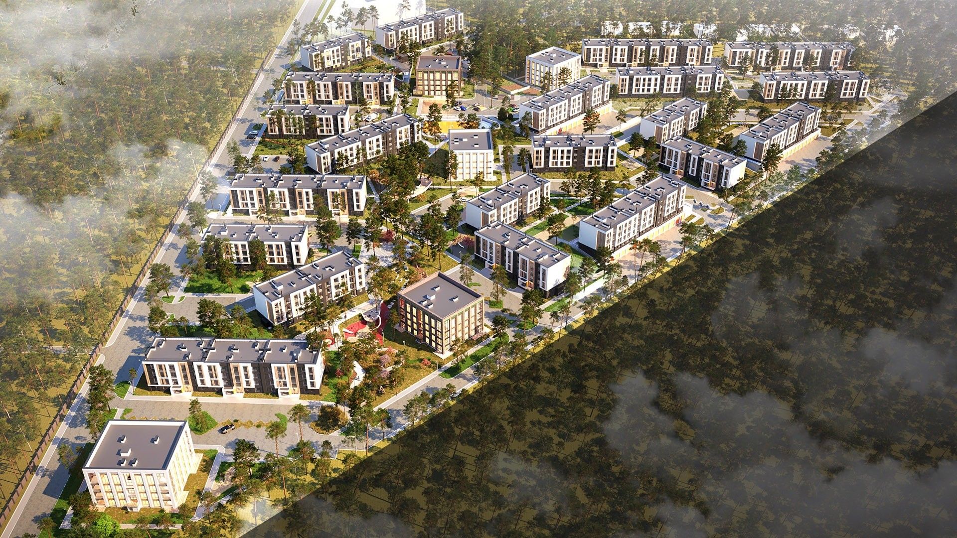 Малоэтажные четырёхэтажные дома объединены большим зелёным пространством и центральным пешеходным бульваром длиной около 700 метров. Внутри — спокойные дворы без машин и продуманная среда для детей и взрослых.