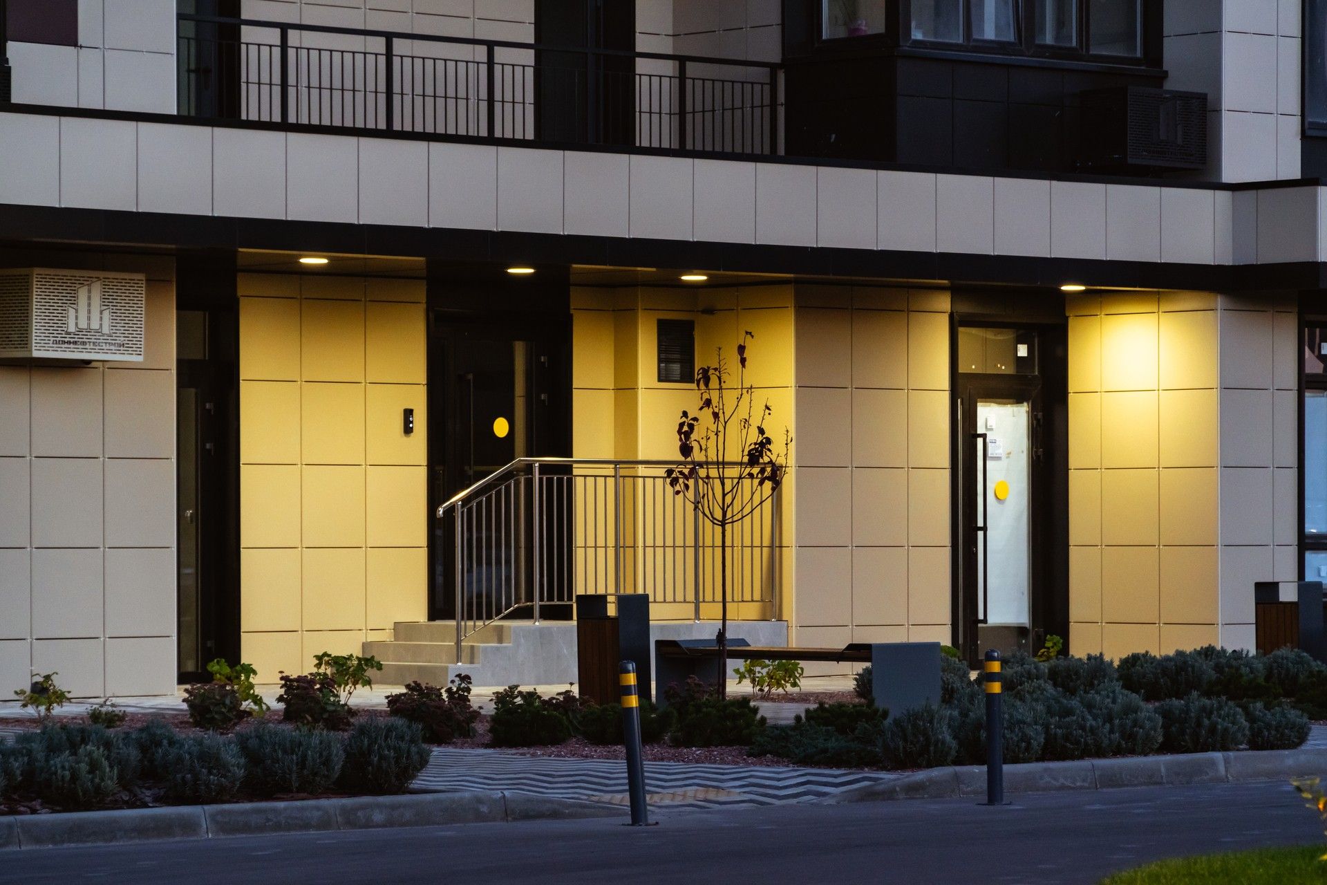 Вход в подъезд на уровне тротуара будет несомненным преимуществом. Это удобно для родителей с колясками и велосипедистов. В каждом подъезде будет отдельное помещение для консьержа, места для колясок и велосипедов.