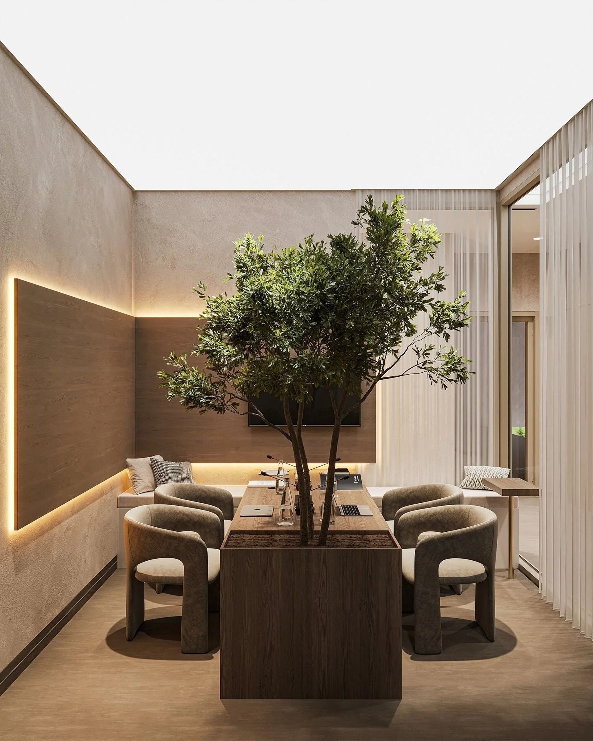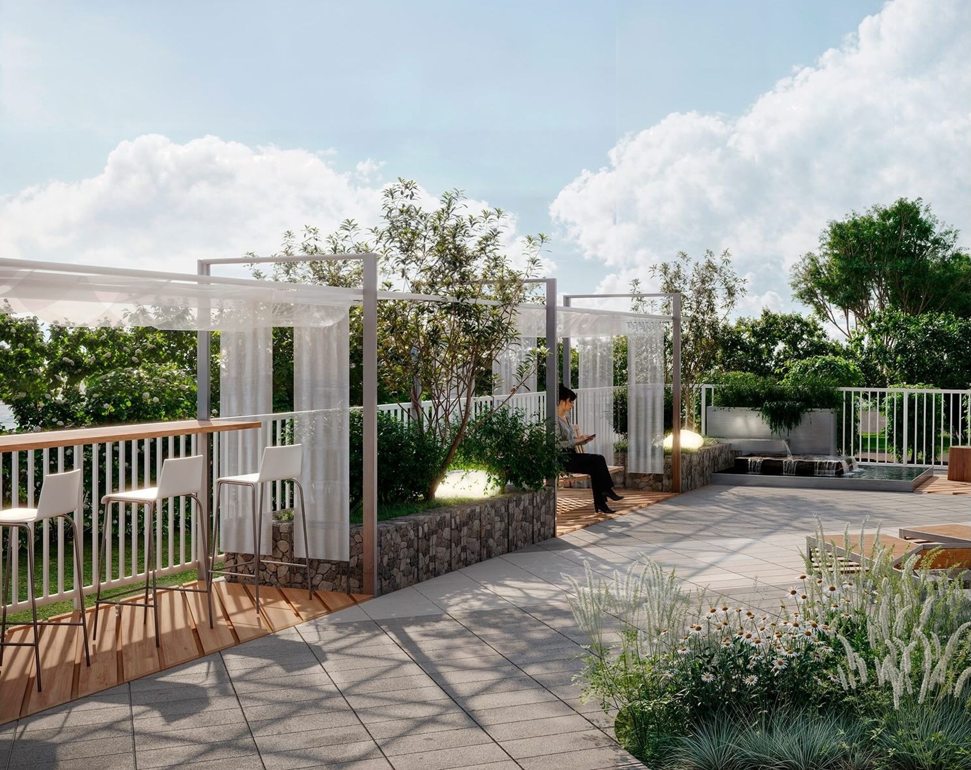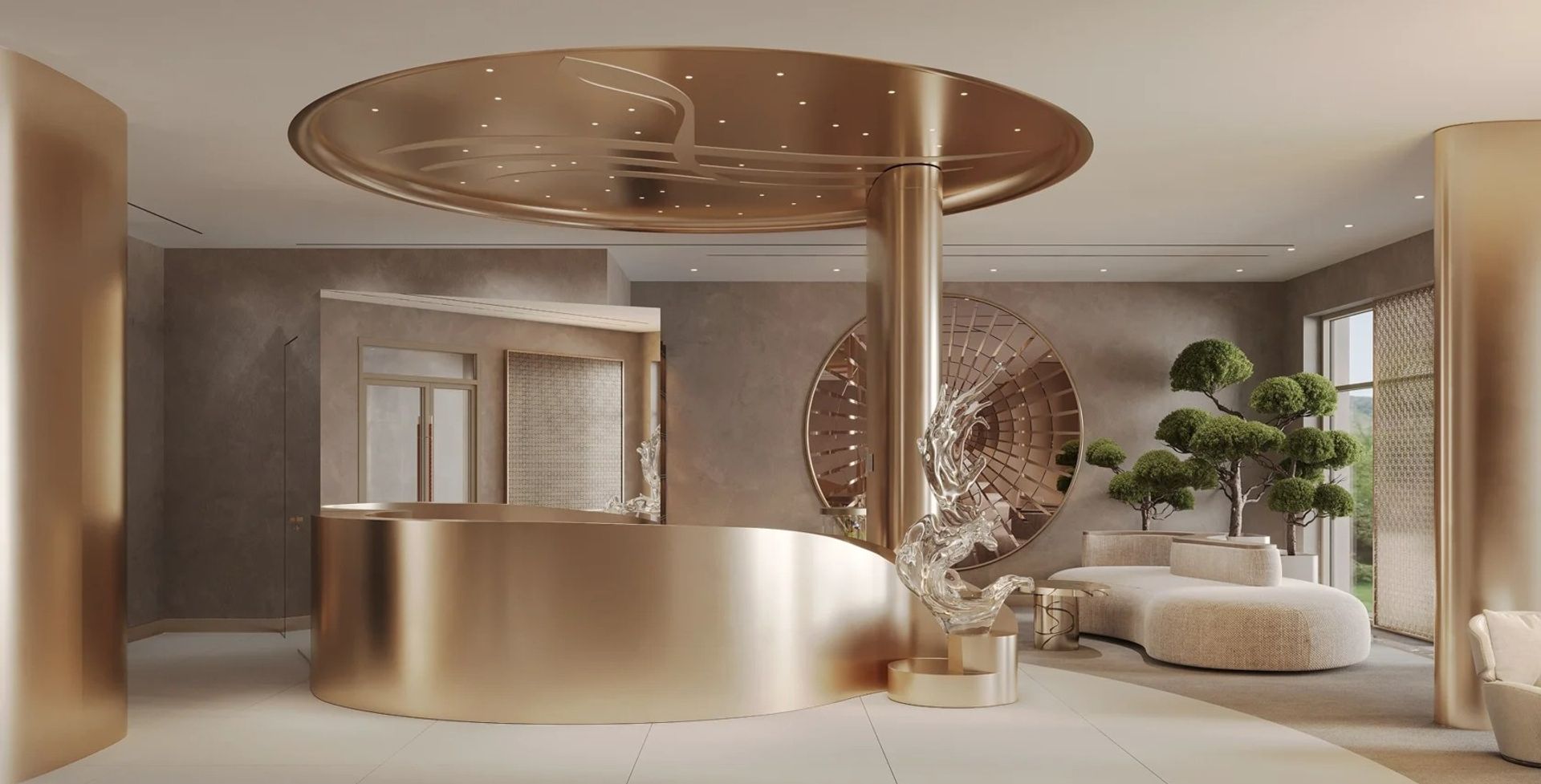 Отдельный акцент сделан на верхних уровнях: каждый корпус имеет характерное архитектурное обрамление. В одном случае это насыщенный красный, в другом — сдержанный серый, а в третьем — динамичный золотисто-жёлтый. Такие «короны» формируют индивидуальность каждого здания и одновременно объединяют их в единую композицию.