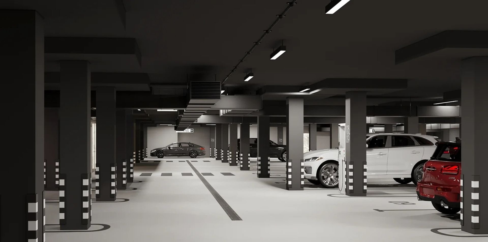 Для автомобилей предусмотрен подземный паркинг на 55 мест.