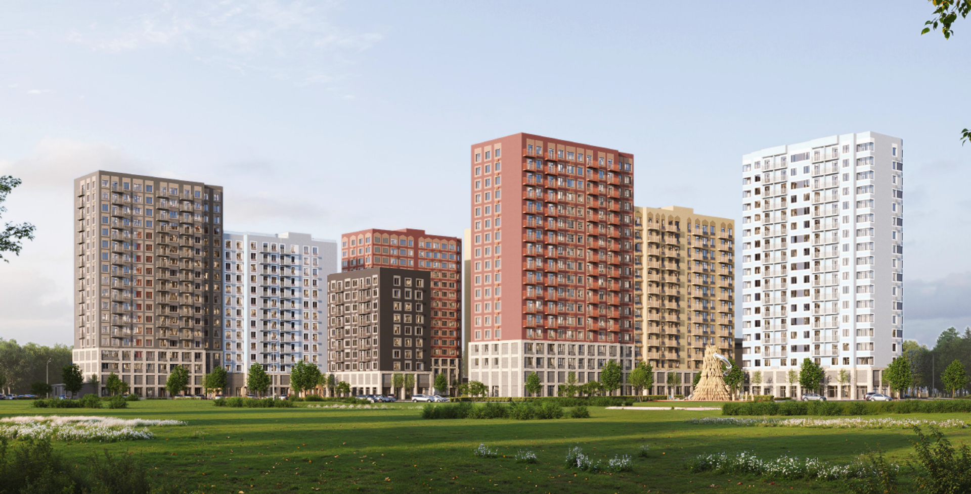 Фасады комплекса выполнены в европейском стиле — с ритмом, светом и характером. Каждый корпус имеет свой оттенок: терракотовый, песочный, серый или белый. В сочетании они создают живую композицию и узнаваемый облик квартала.
