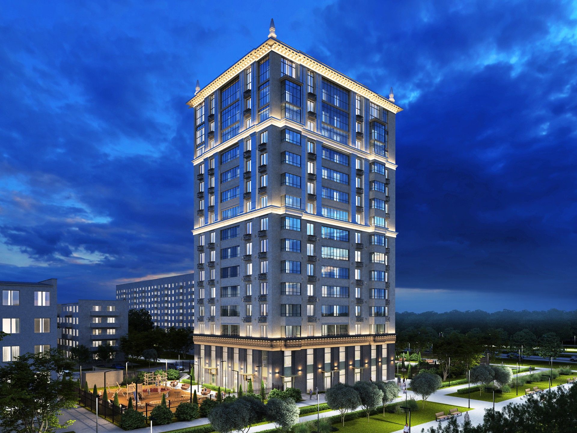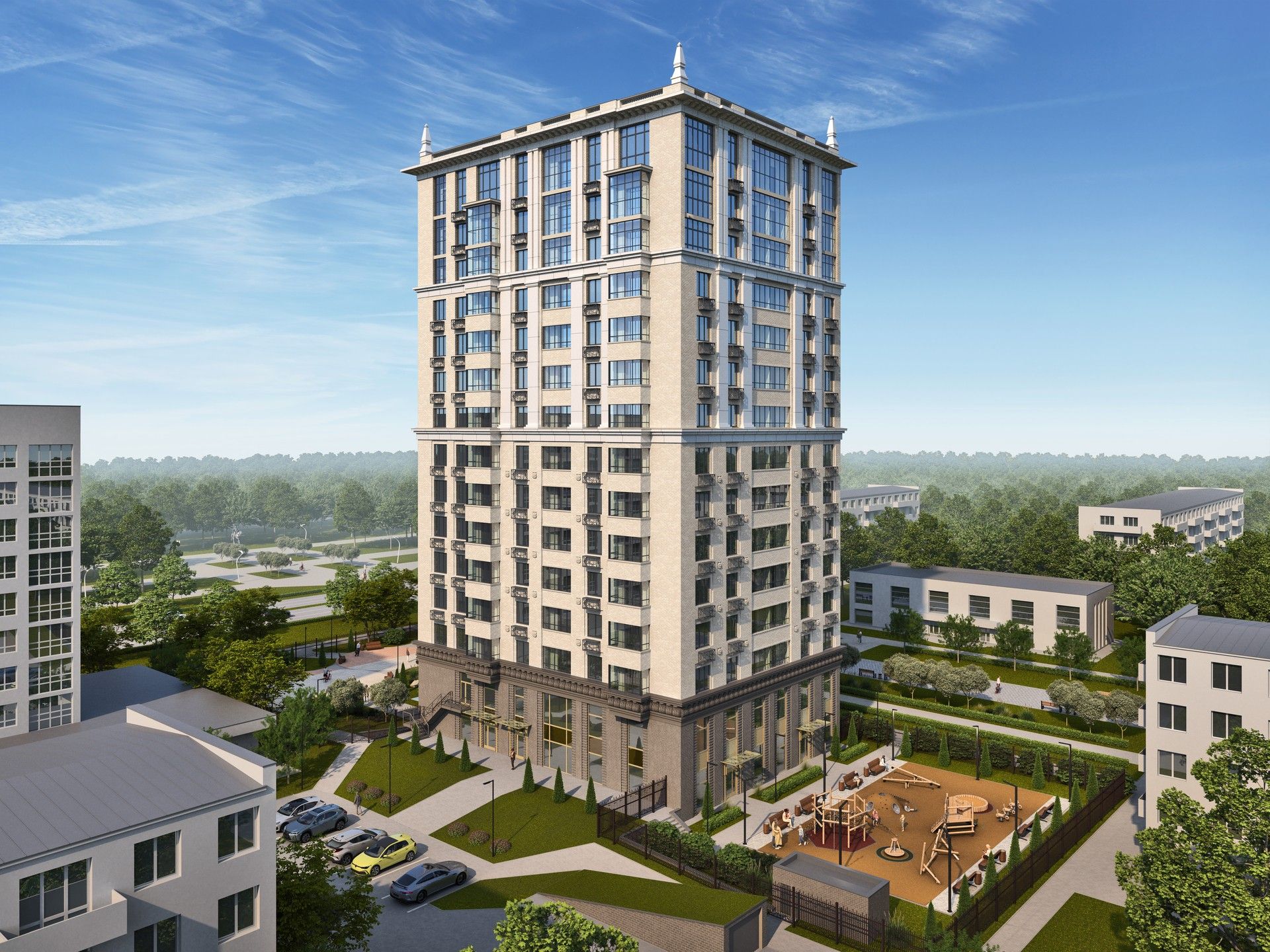 Такое окружение делает проект особенно привлекательным для семей с детьми, а также для тех, кто ценит комфорт городской жизни.
