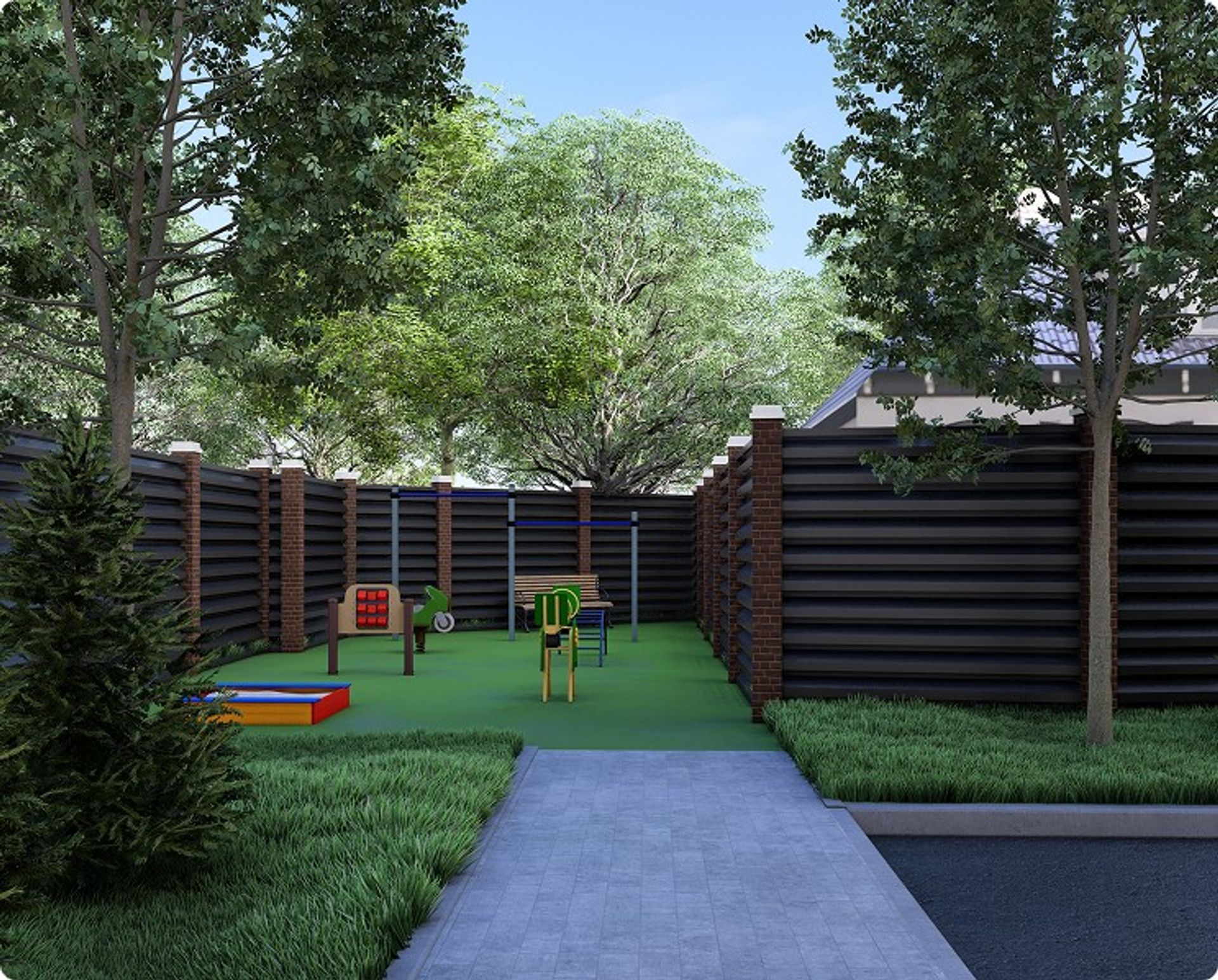 Территория благоустроена и собрана под ежедневные привычки: вернуться домой приятно, пройтись по освещённым линиям удобно, а двор не ощущается транзитным. Здесь считывается городской формат: аккуратность, функциональность и спокойная приватность без лишнего шума.