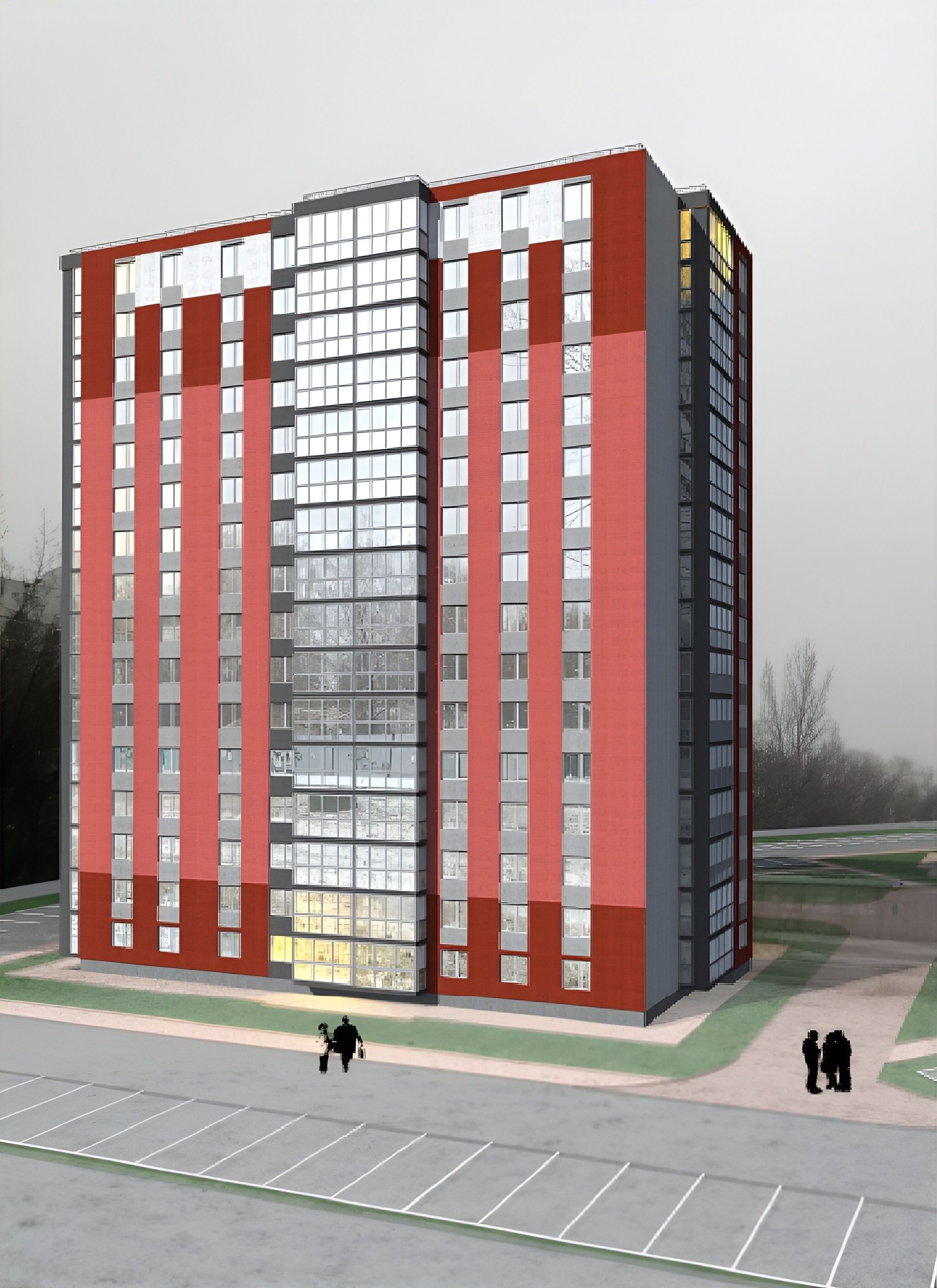 В результате архитектура выглядит сдержанно и геометрично, с акцентом на вертикали и ритм.