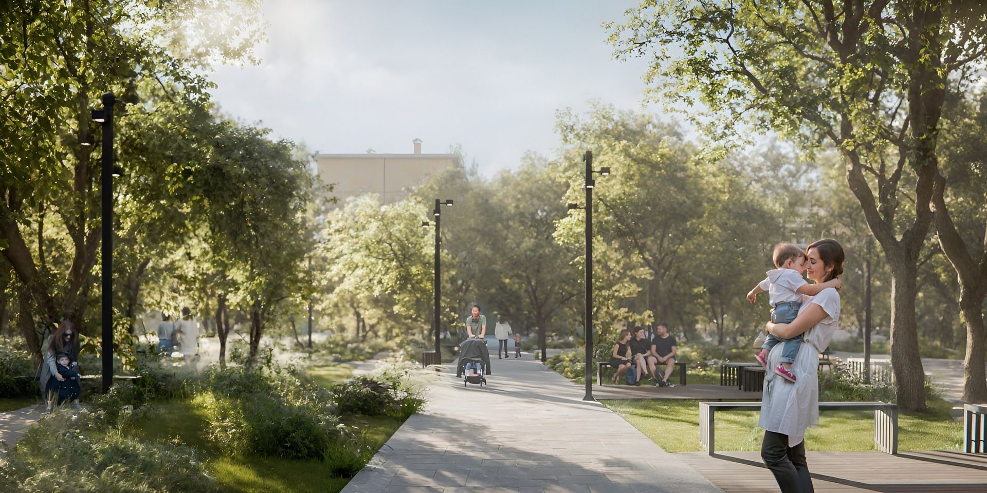 Двор здесь — про ежедневные сценарии: детям — движение и игра, взрослым — возможность пройтись и выдохнуть без лишней суеты.