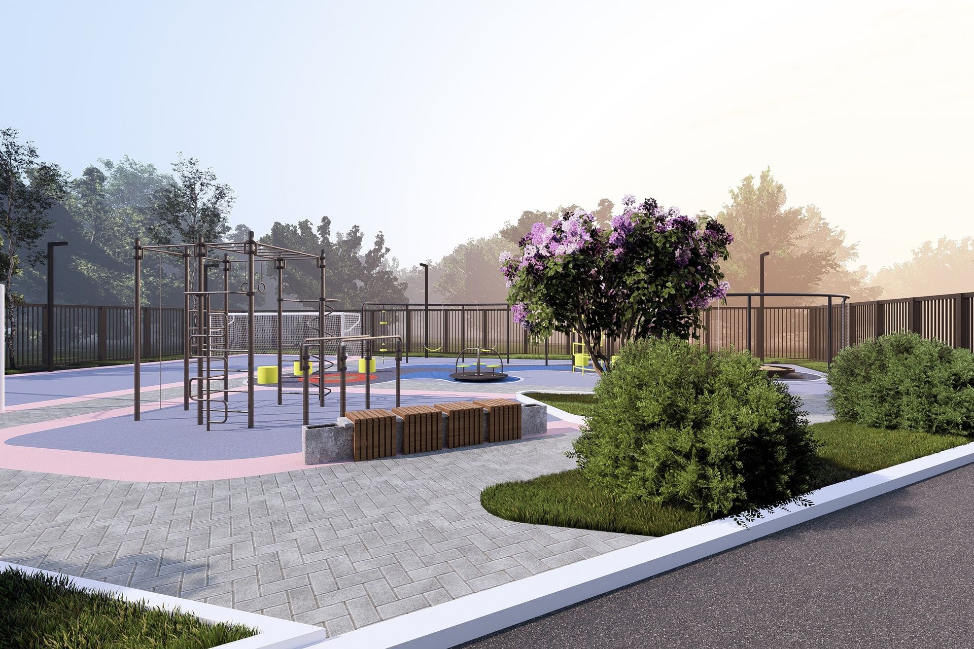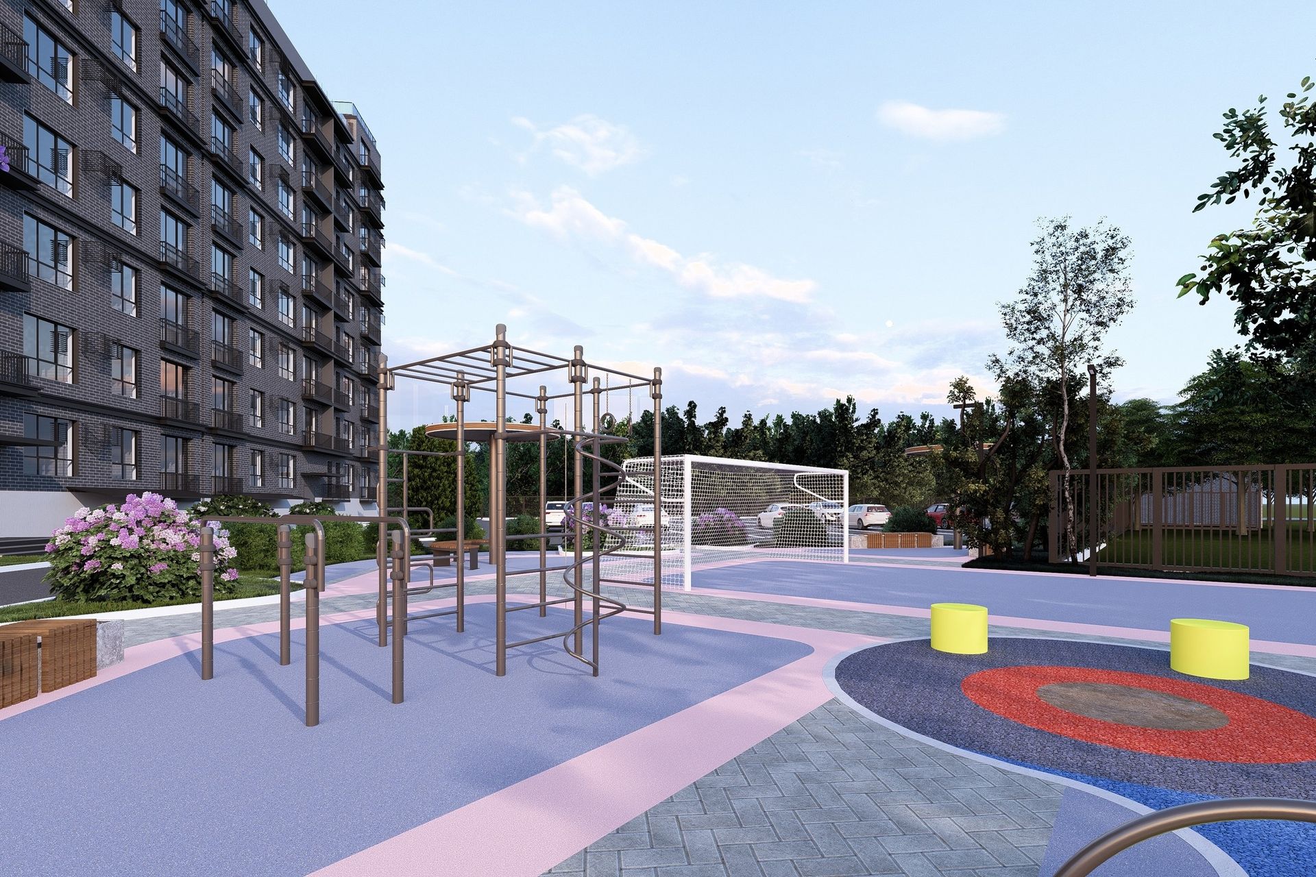 Территория закрыта и охраняется, а внутреннее пространство спроектировано для отдыха и активности:
