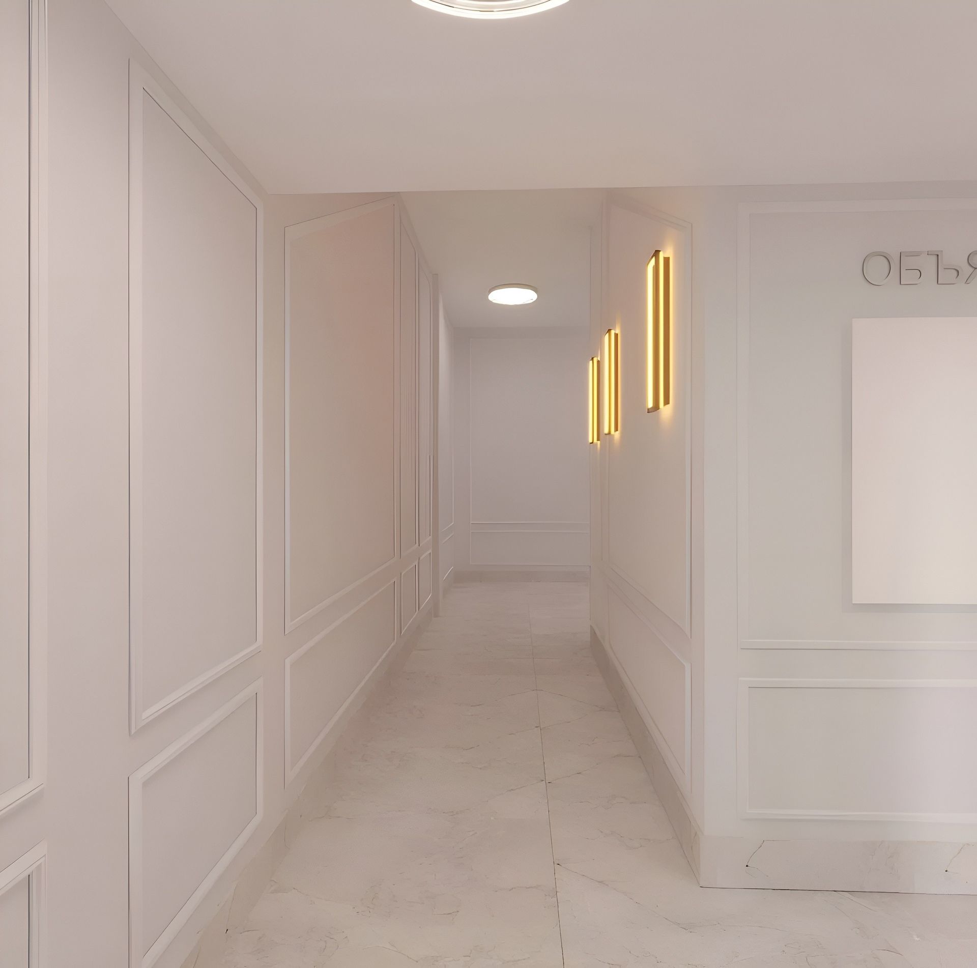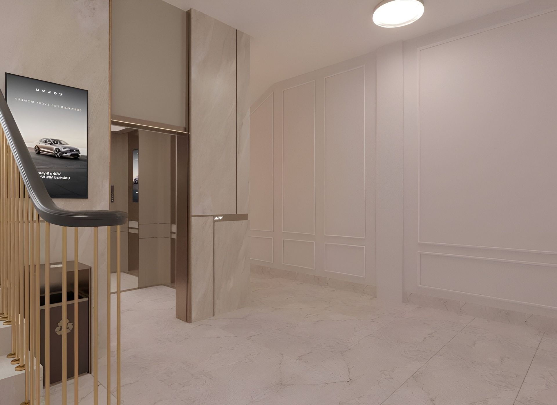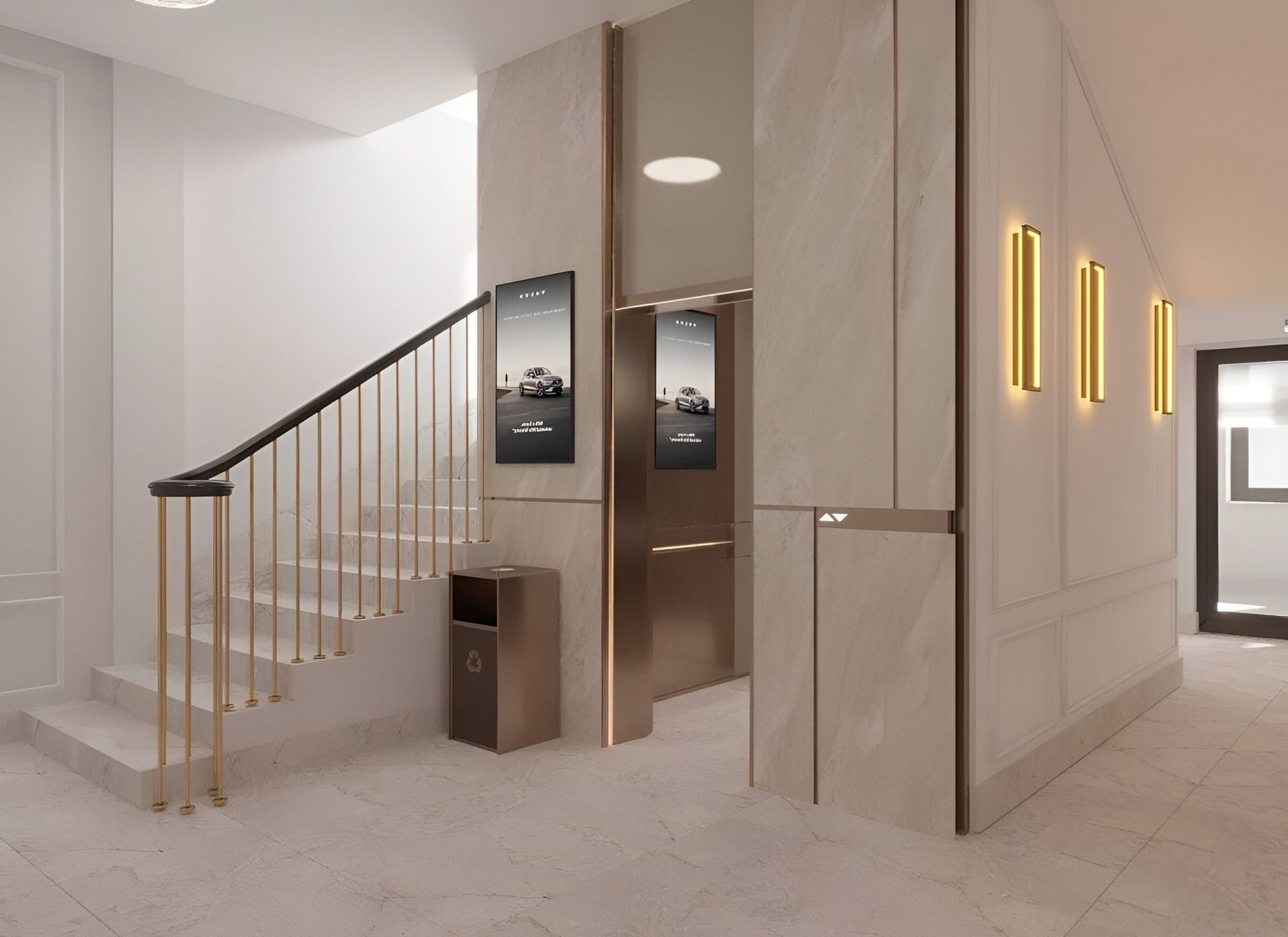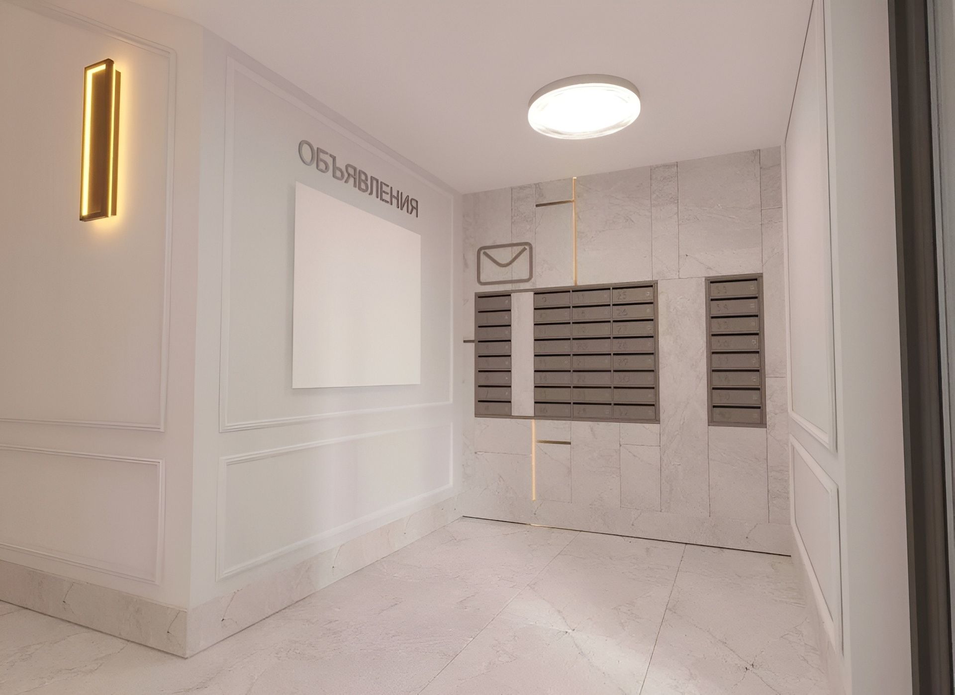 Входная группа встречает жителей уютными бежевыми оттенками холла. На этажах установлены:
