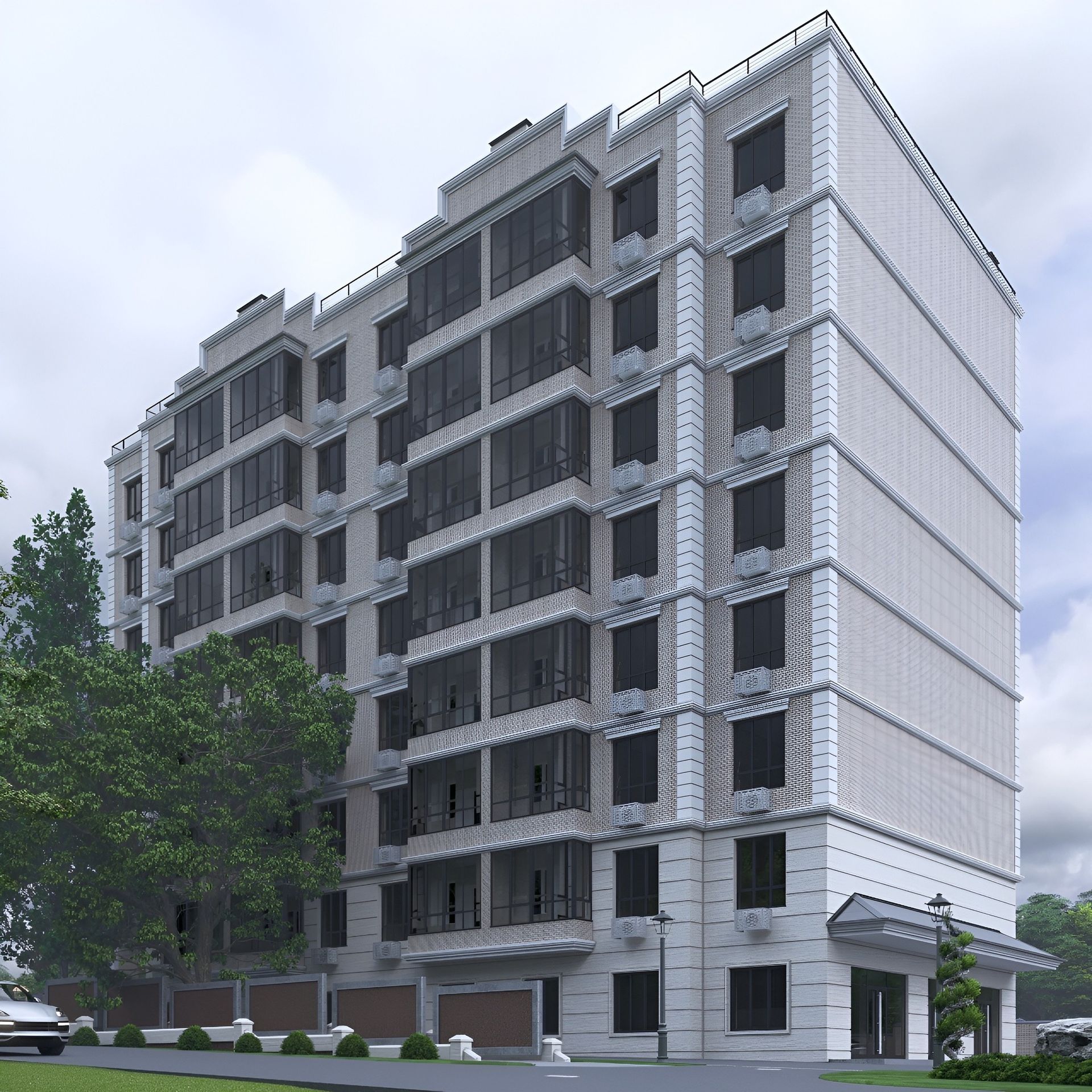 Дом одноподъездный, включает цокольный этаж с общественными помещениями и 7 жилых этажей. Всего — 55 квартир.