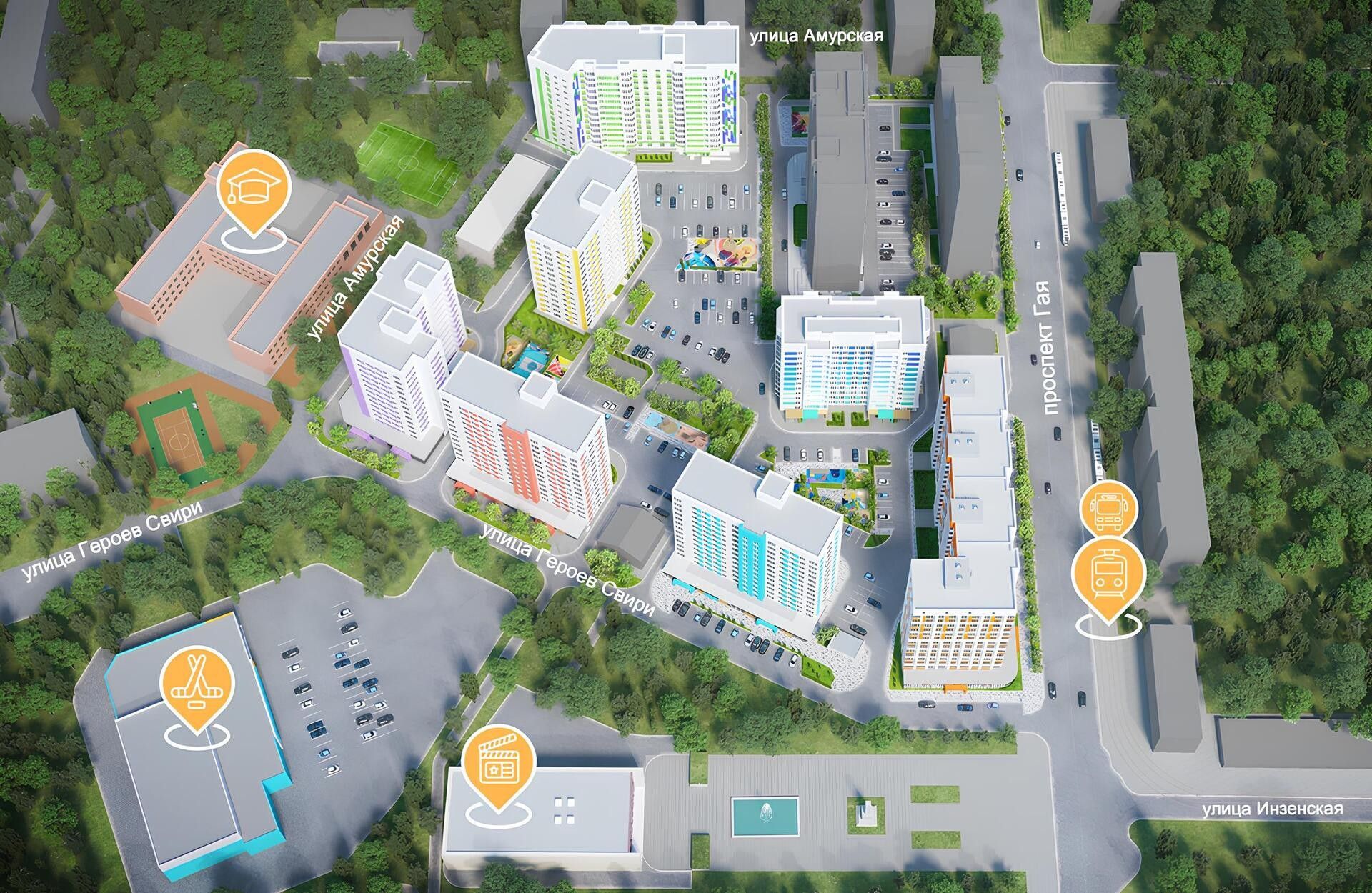 ЖК «Семейный» расположен в районе с развитой инфраструктурой. В радиусе 500 метров — десятки объектов для жизни, учёбы и отдыха:
