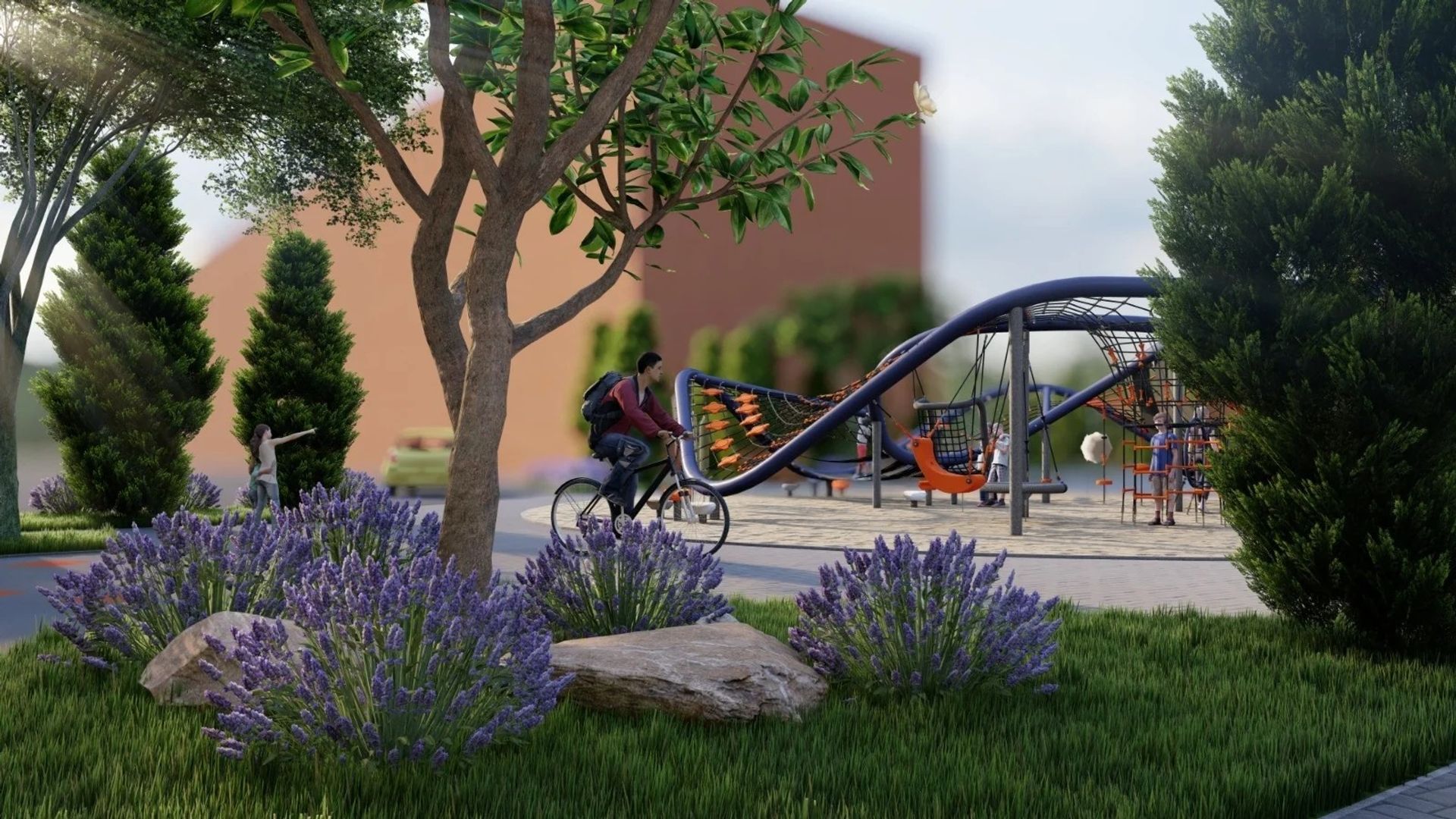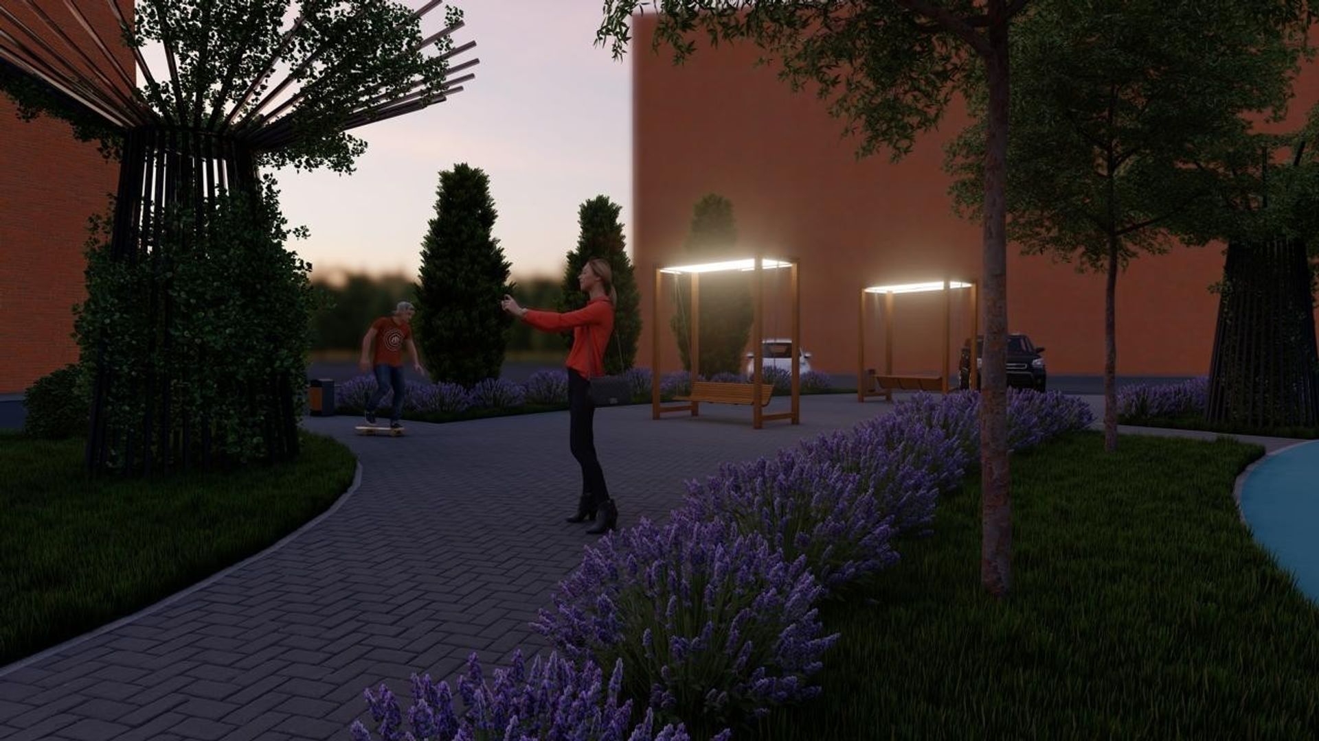 На ухоженной придомовой территории высажены зеленые газоны, кустарники и деревья, запроектирован собственный бульвар с прогулочными дорожками, места отдыха для взрослого населения. Также в комплексе есть зоны сушки белья. Для детей предусмотрены оборудованные игровые и спортивные площадки, велодорожки.