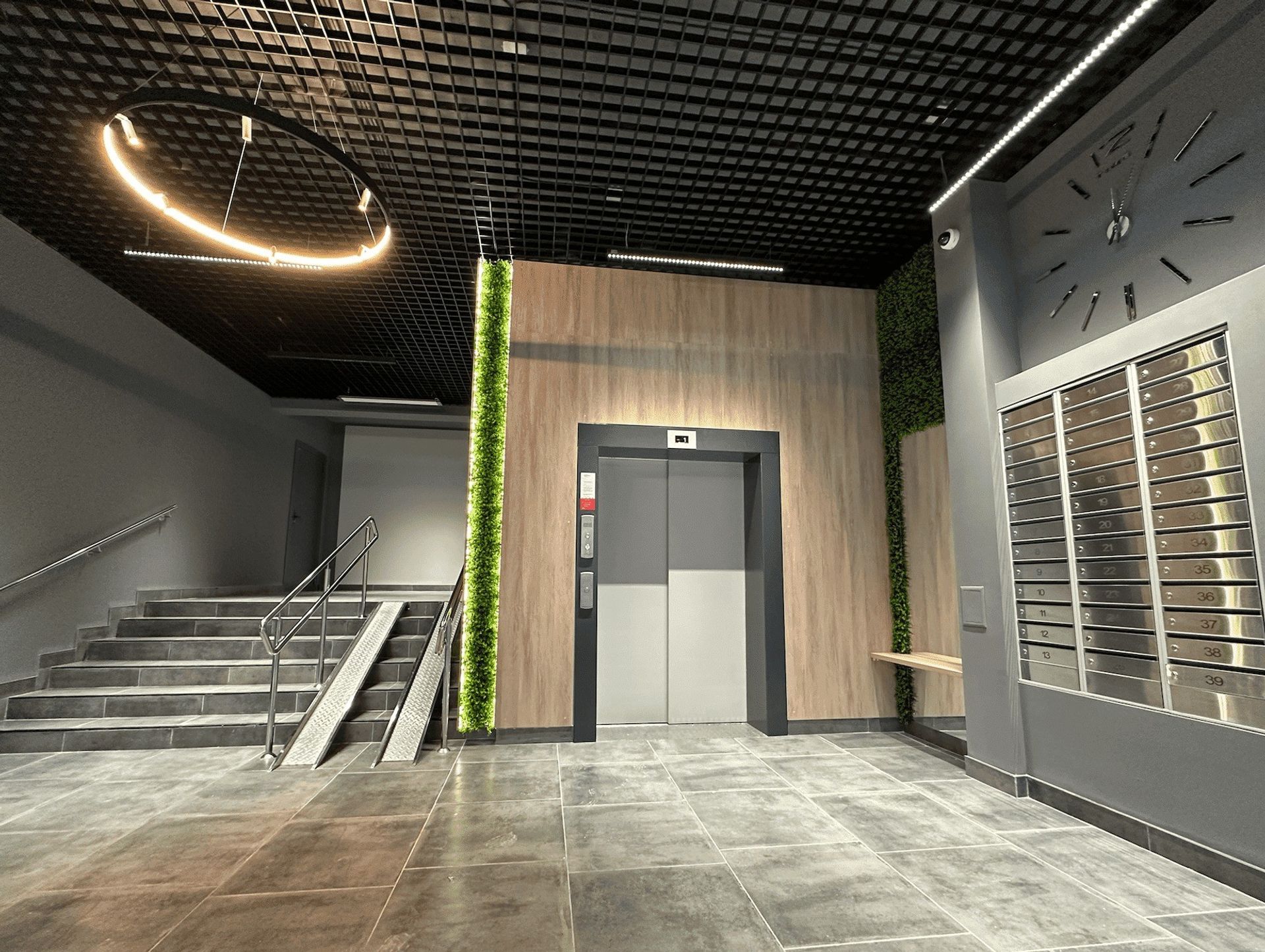 Дизайнерская отделка на каждом этаже поддерживает общий стиль дома и аккуратный вид мест общего пользования.