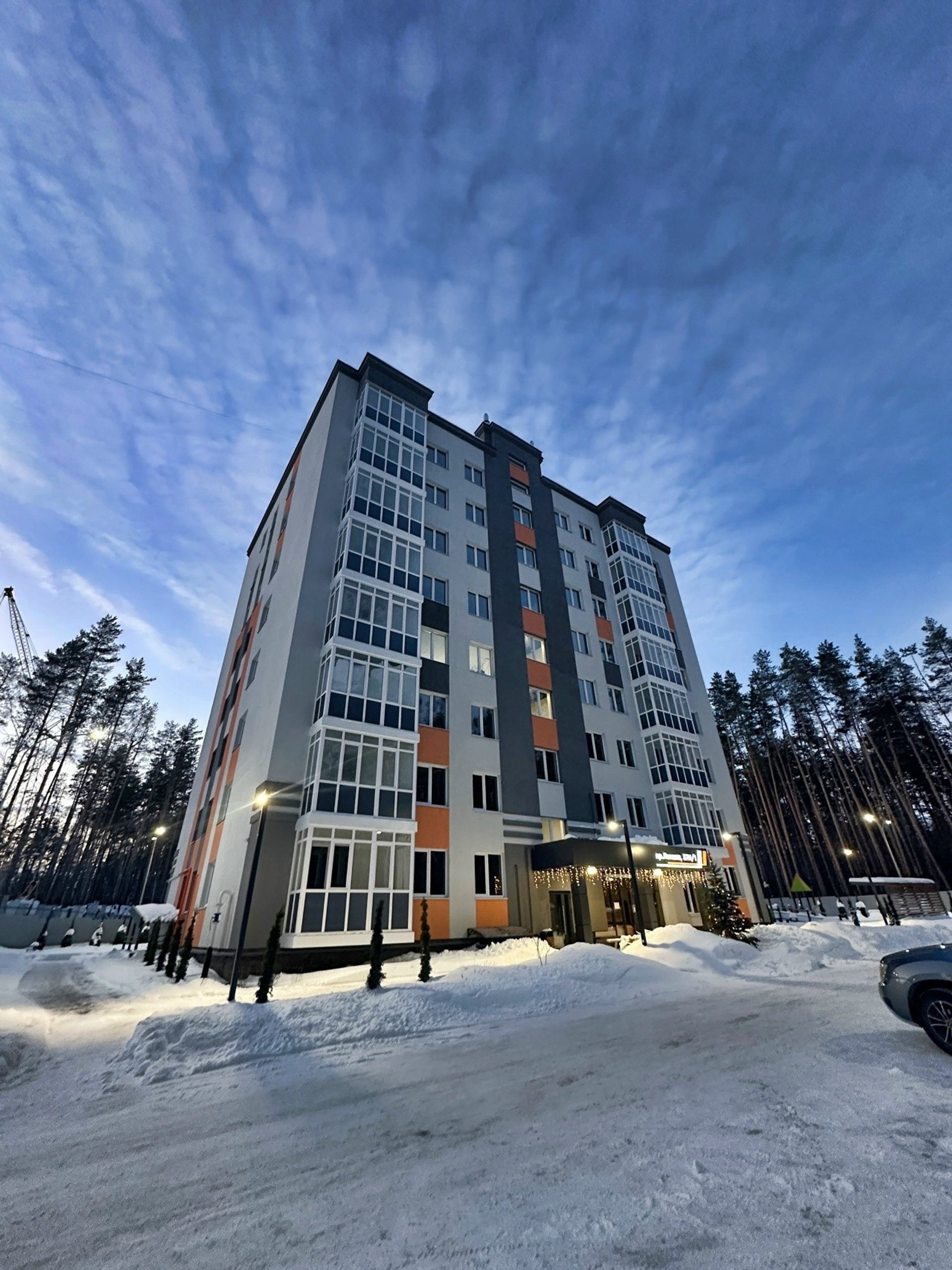 В пару минут — магазины, сервисы, спорт и образование. Панорамные окна раскрывают вид на зелень, а вечерняя архитектурная подсветка добавляет настроения дворам и фасадам.