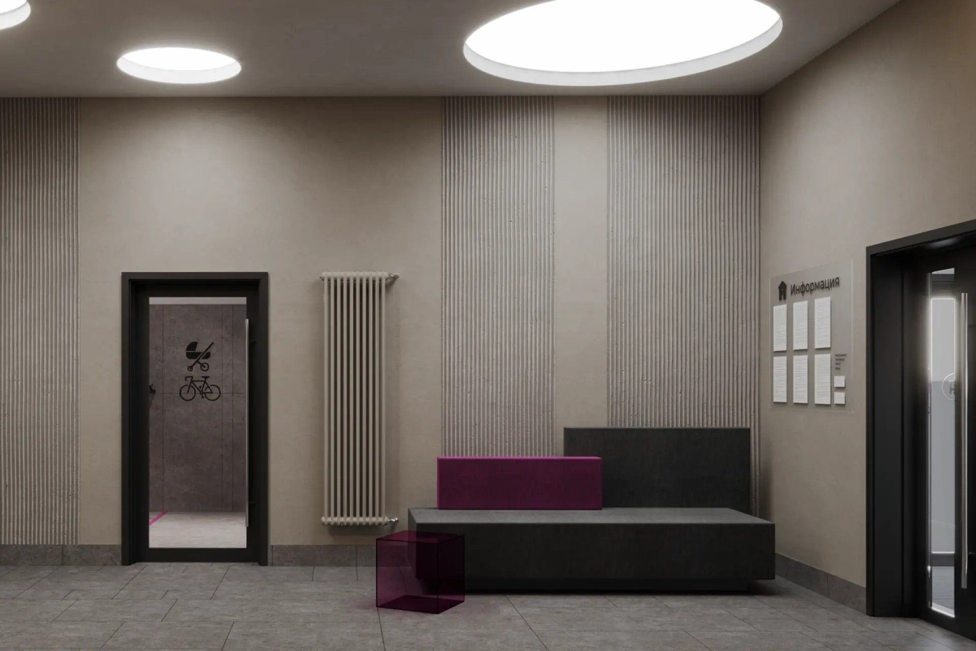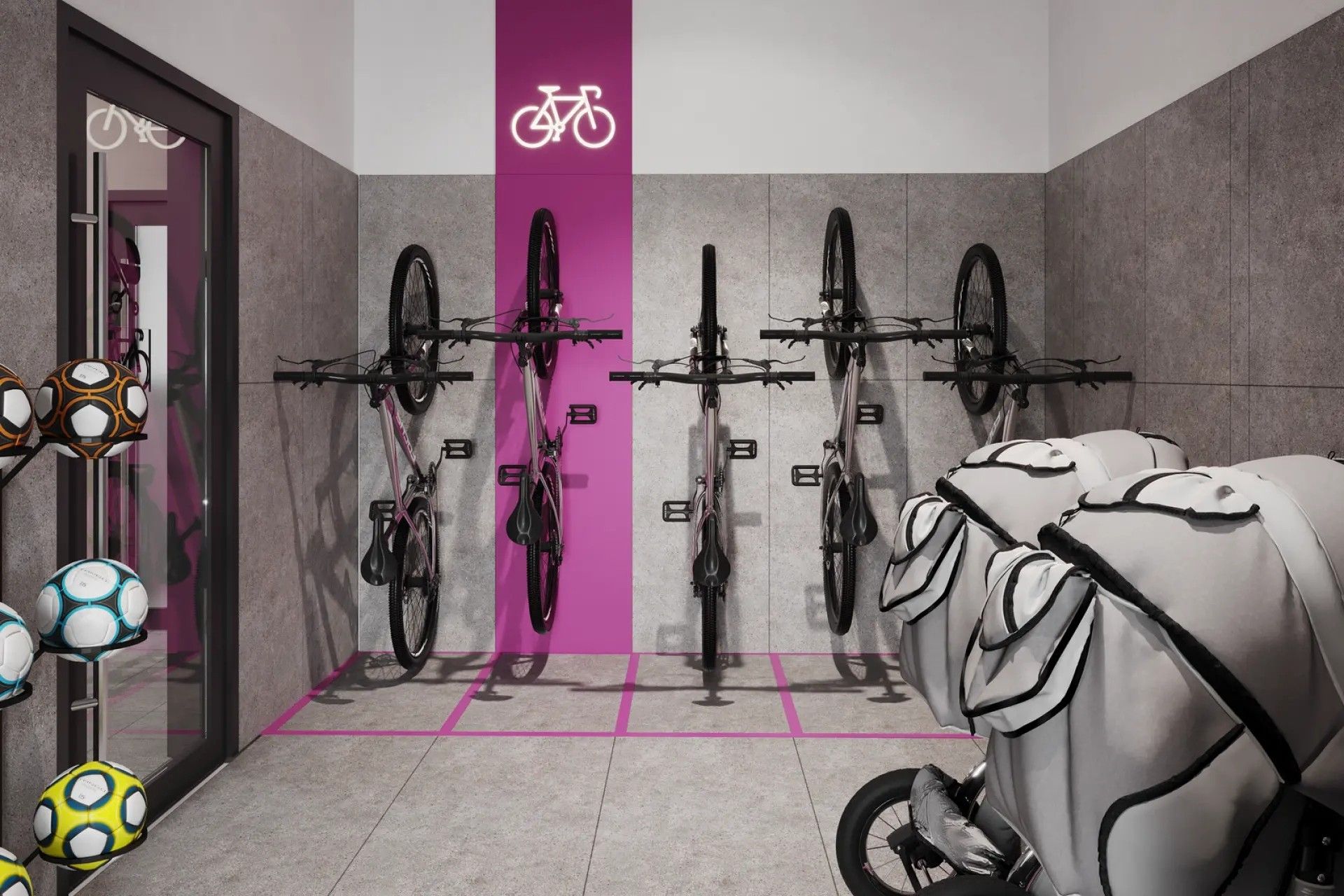 - Колясочные и велопомещения — отдельные комнаты для хранения транспорта.