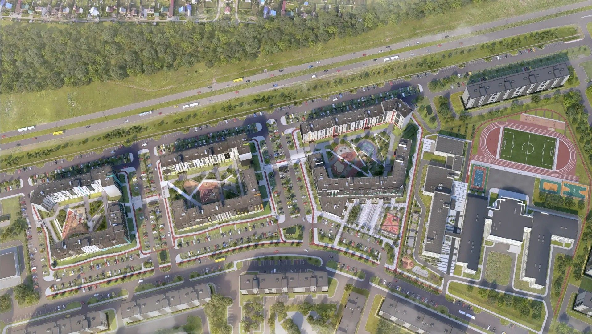 Проект разрабатывался при участии ведущих архитекторов и дизайнеров, чтобы каждый дом выглядел выразительно, а пространство между ними — логично и живо.
