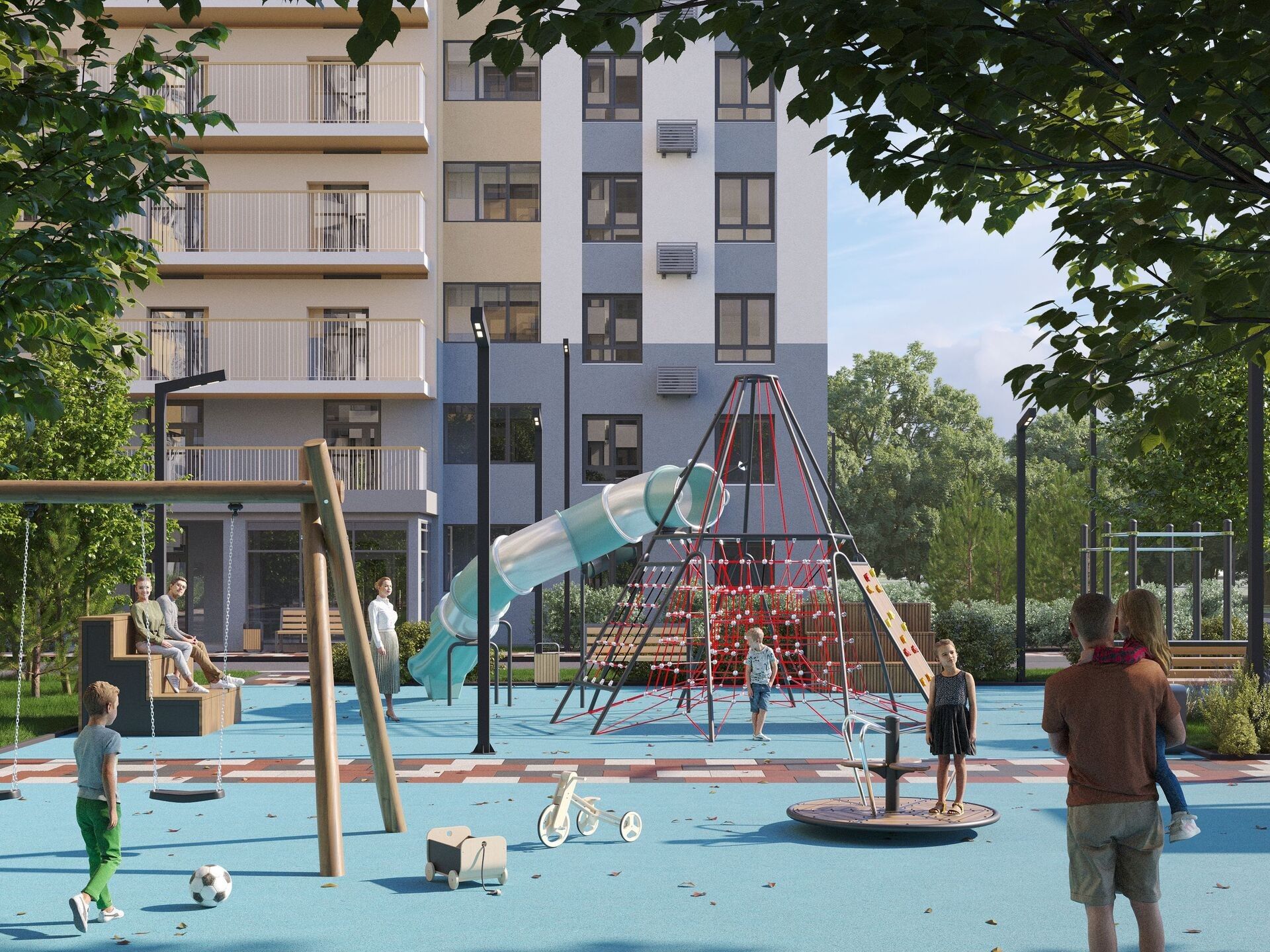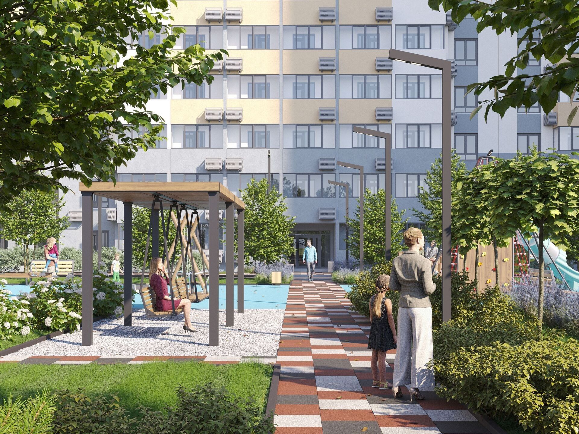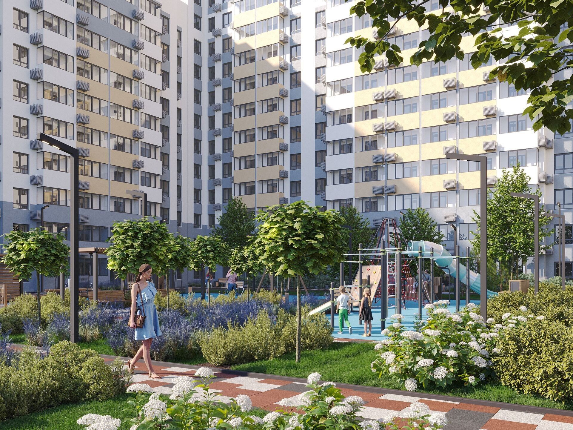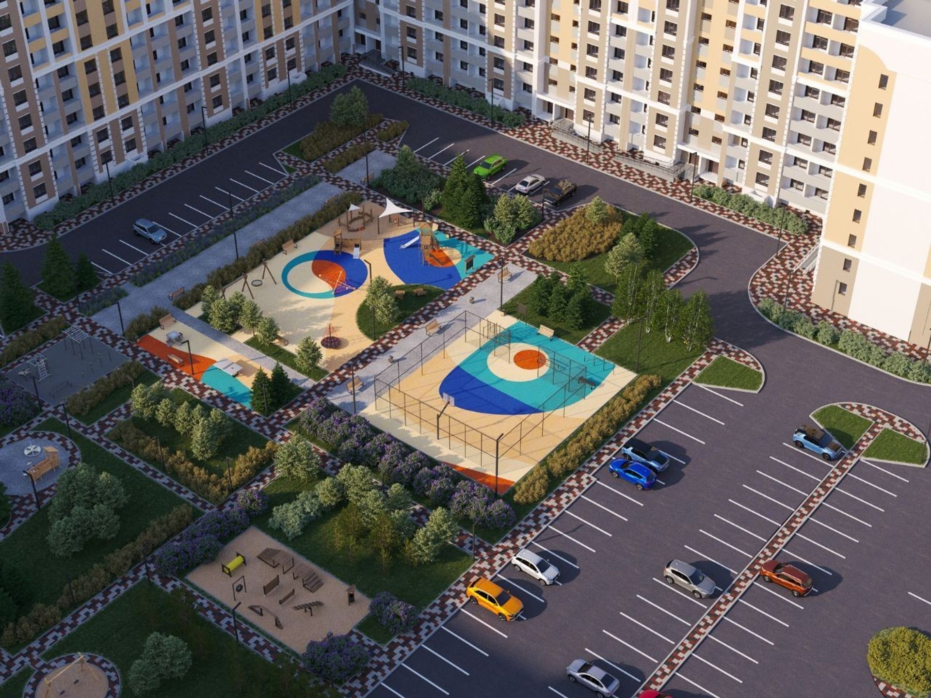 - семьям — за счёт окружения школ/садов и двор-сценариев;