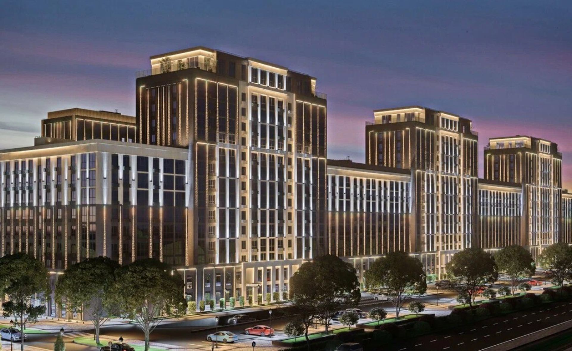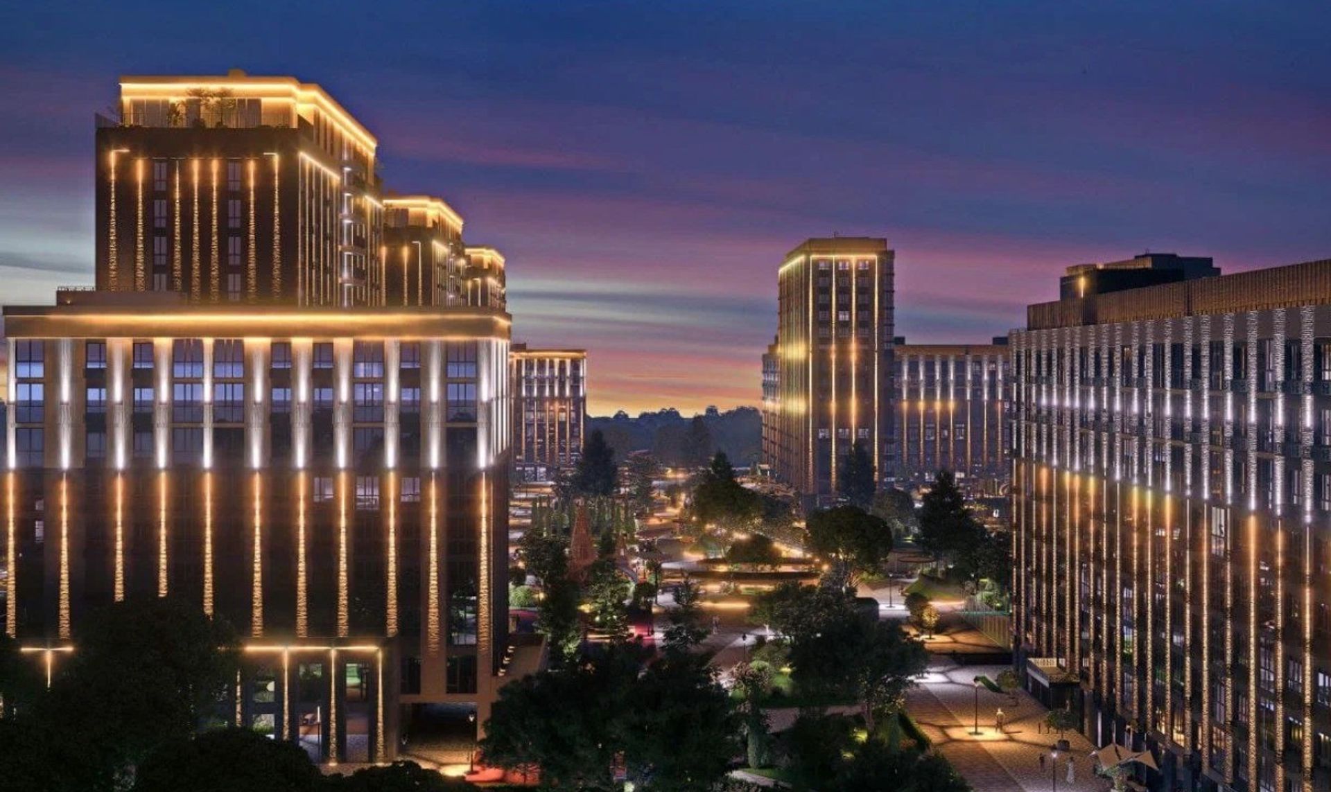 Архитектура фасадов в бежевом и коричневом цветах разработана по индивидуальному проекту. Панорамное остекление придает облику особый «зеркальный» вид. В отделке здания используется декоративный камень, подчеркивающий высокий статус домов. На фасадах установлены декоративные корзины для кондиционеров, а вечернее время включается приятная подсветка.