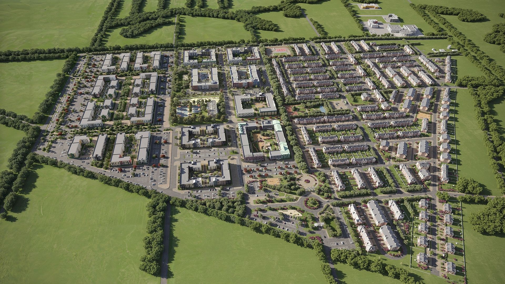 В центре — семейная и спортивная аллеи, которые служат естественной границей и общественным пространством одновременно. Проект выполнен в формате mixed-use — когда жильё гармонично соседствует с торговыми, развлекательными и социальными функциями.