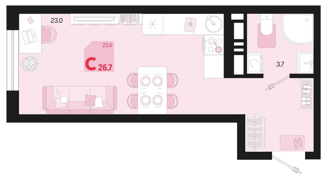 Общая площадь26,7 м²