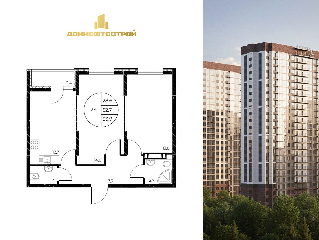 2-комнатная — 53,9 м² 24/25 эт. в Панорама на Театральном