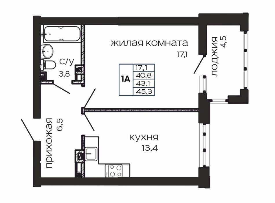 | 1-комн. | 43 м² | 5,3 - 7 млн ₽ |