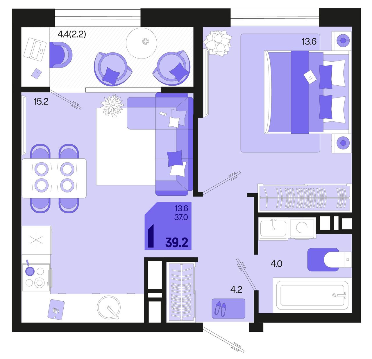 Общая площадь39,2 м²