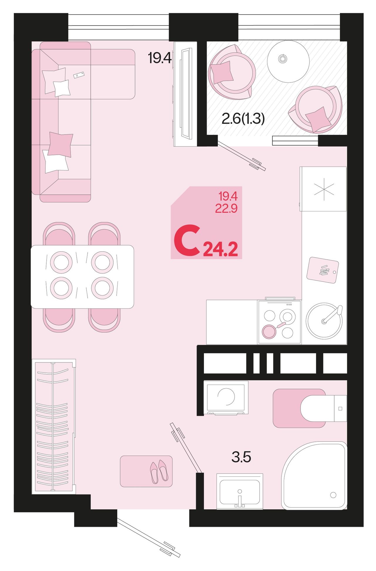 1-комнатная — 24,2 м² 10/18 эт. в Первое место