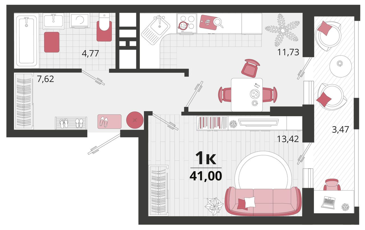 1-комнатная — 41 м² 8/18 эт. в Родные Просторы