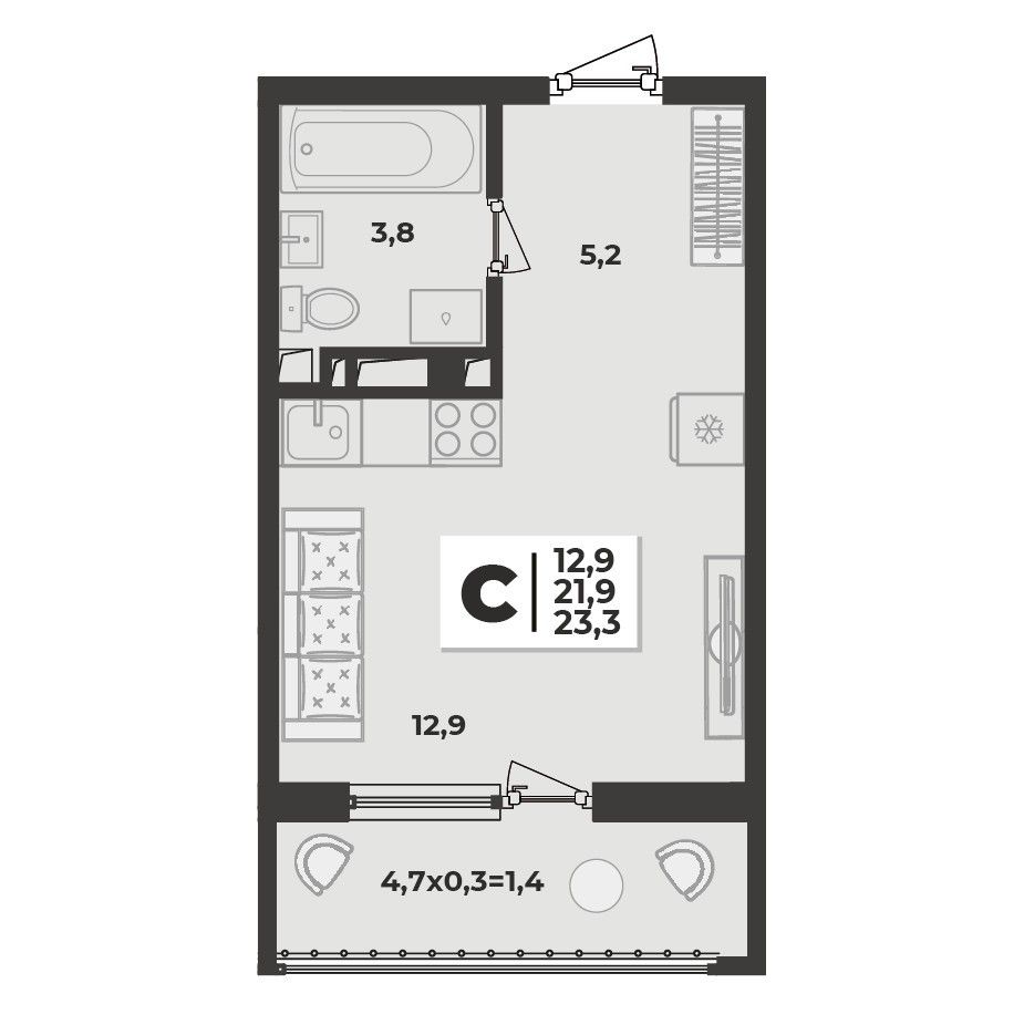1-комнатная — 23,3 м² 9/9 эт. в Лето