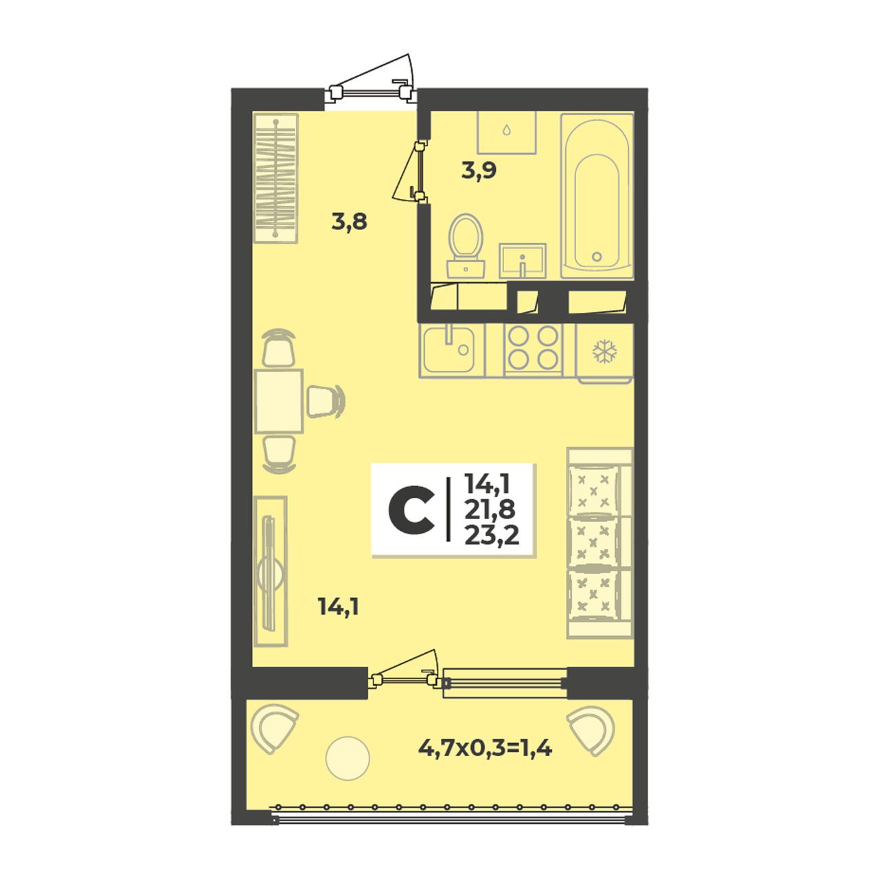 Общая площадь23,2 м²
