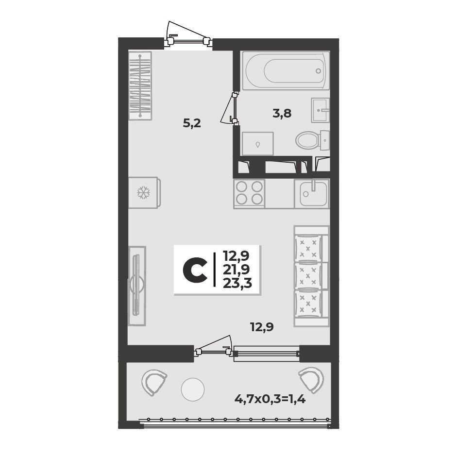 1-комнатная — 23,3 м² 3/9 эт. в Лето