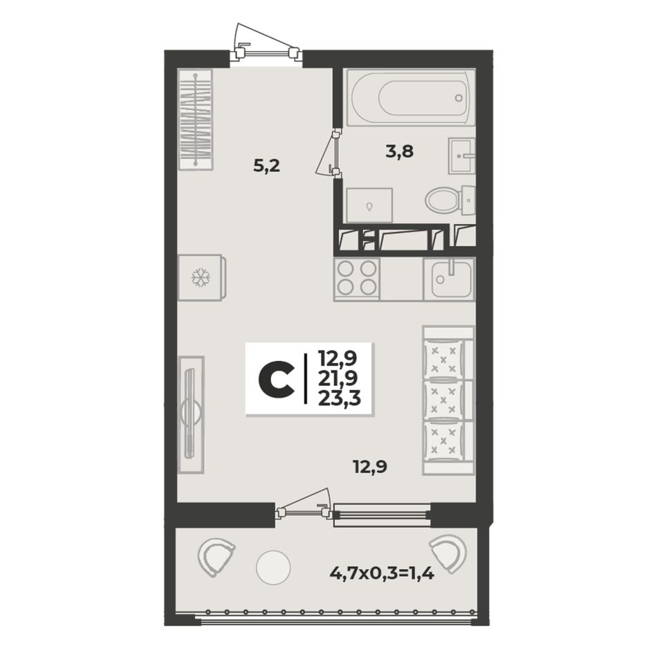 1-комнатная — 23,3 м² 2/9 эт. в Лето