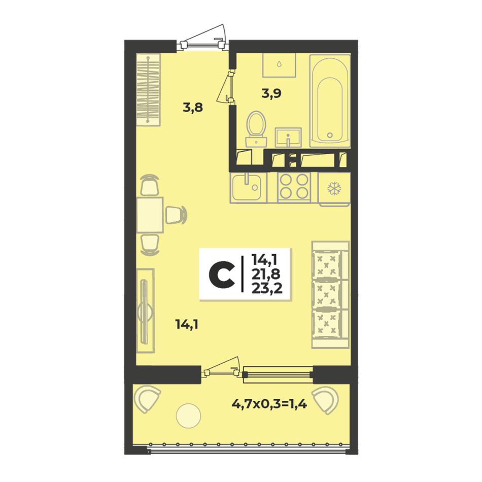 Общая площадь23,2 м²