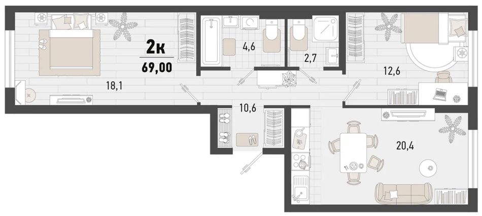 2-комнатная — 69 м² 1/15 эт. в Барса