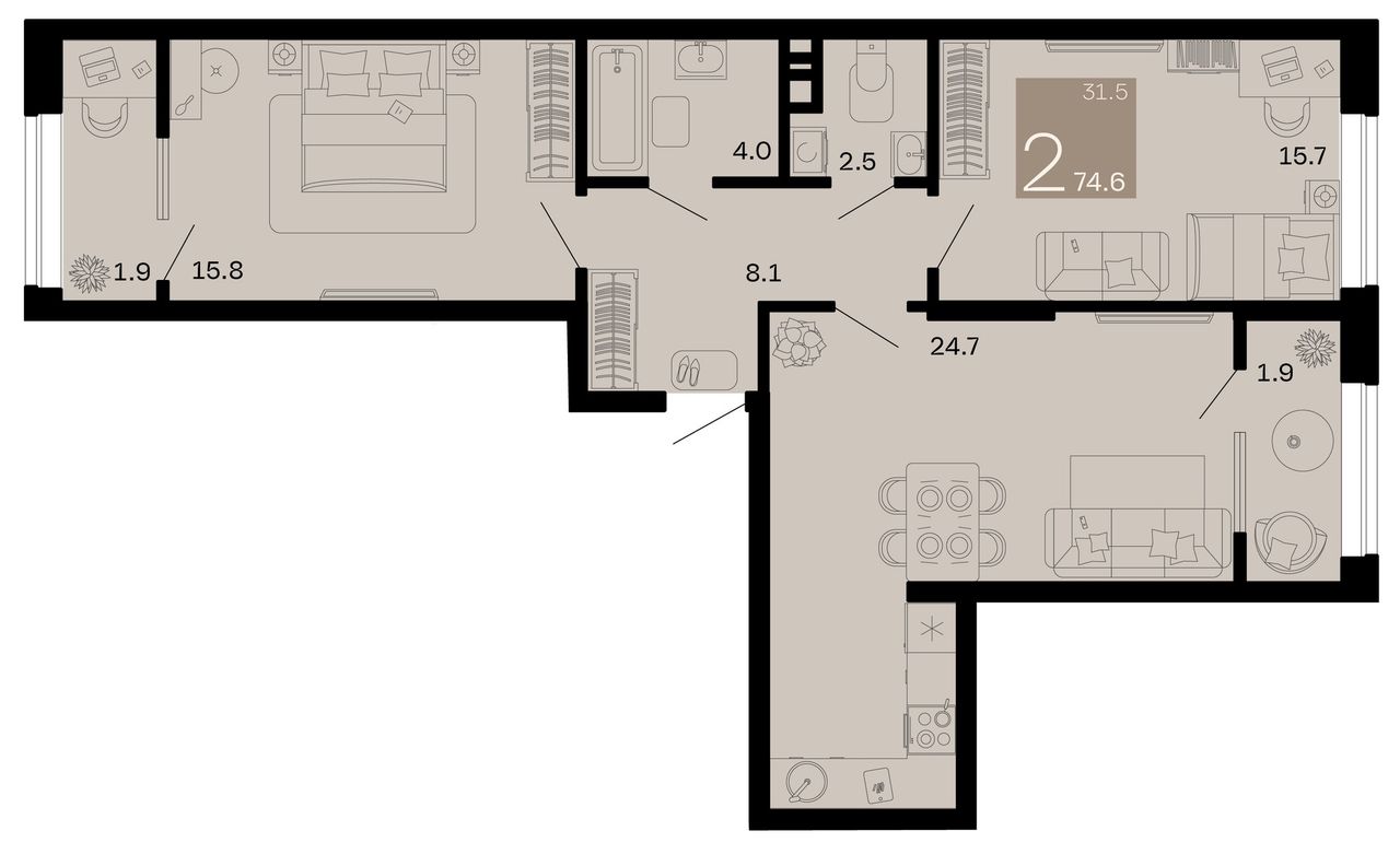 Общая площадь74,6 м²