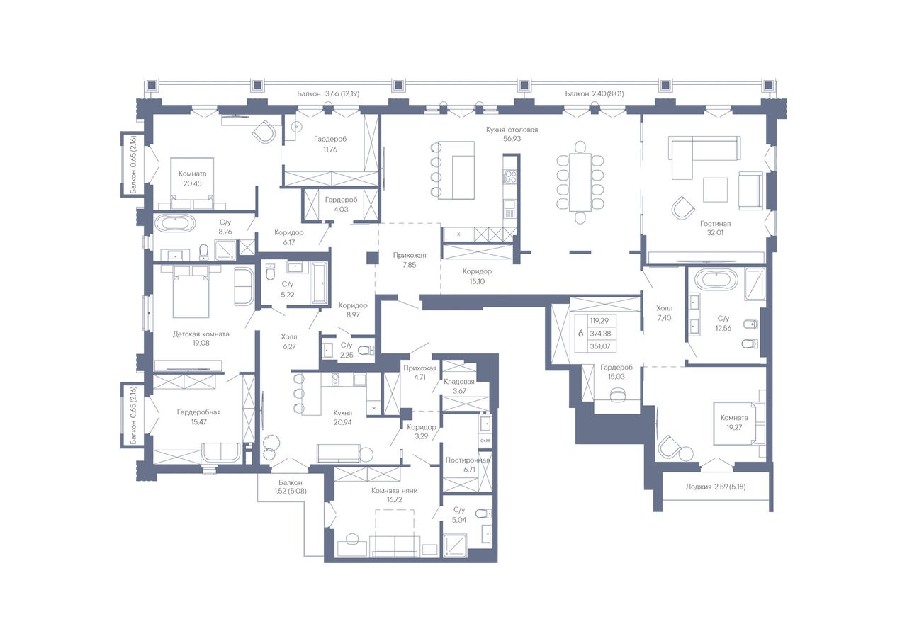 4+ комнатная — 351,07 м² 4/7 эт. в Дом-Резиденция Собрание