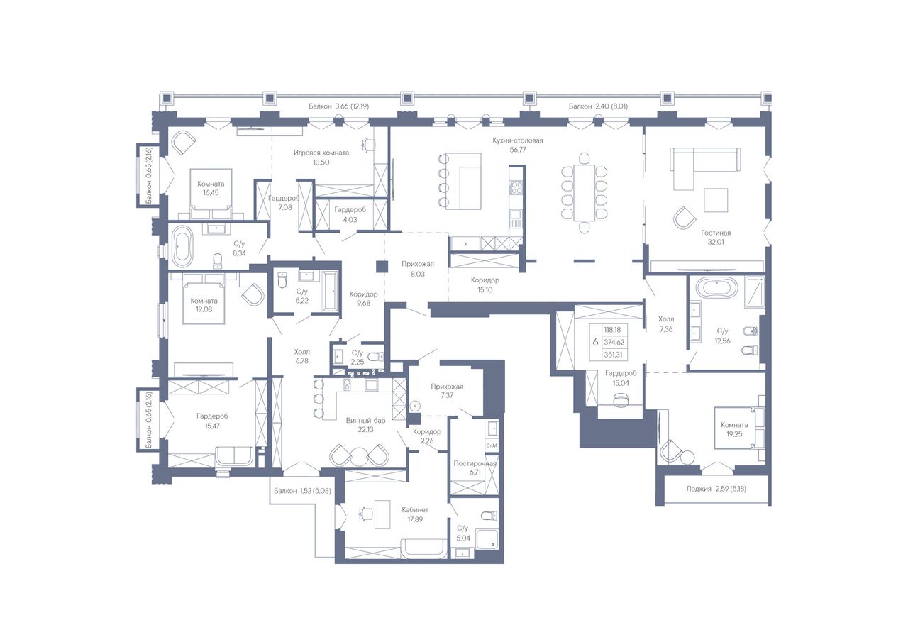 | 4+ комн. | 164 - 351 м² | 68,4 - 209,5 млн ₽ |