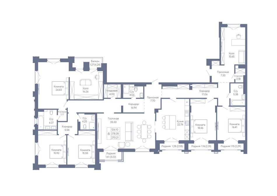 4+ комнатная — 270,21 м² 3/7 эт. в Дом-Резиденция Собрание