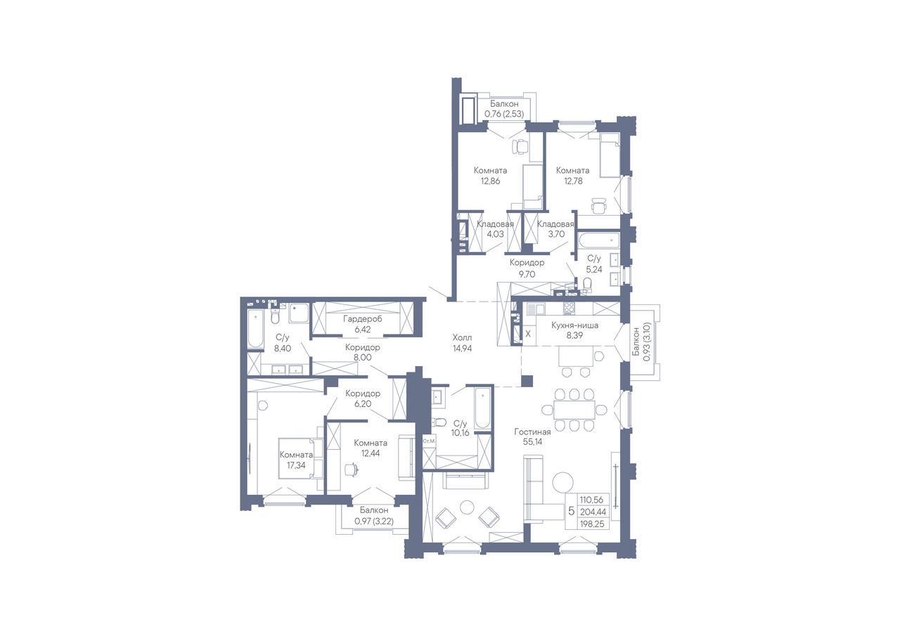 4+ комнатная — 198,25 м² 5/7 эт. в Дом-Резиденция Собрание