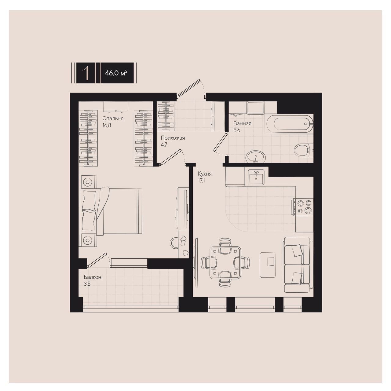 Общая площадь46 м²