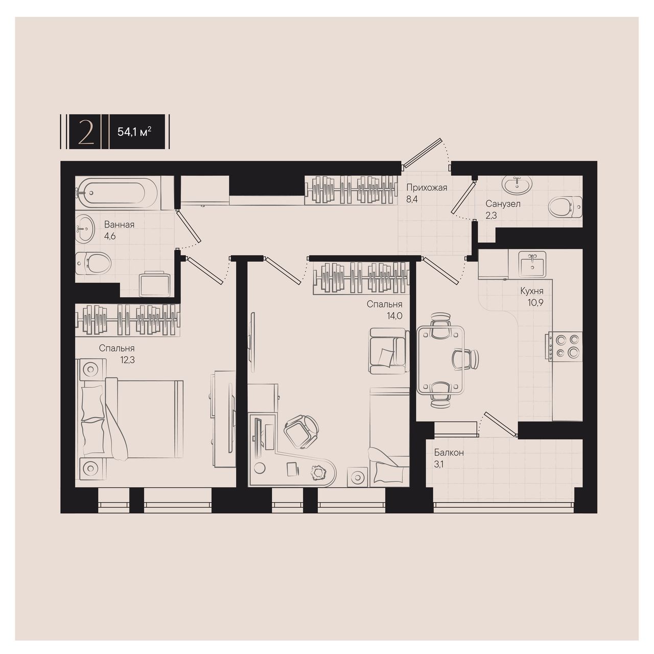Общая площадь54,1 м²