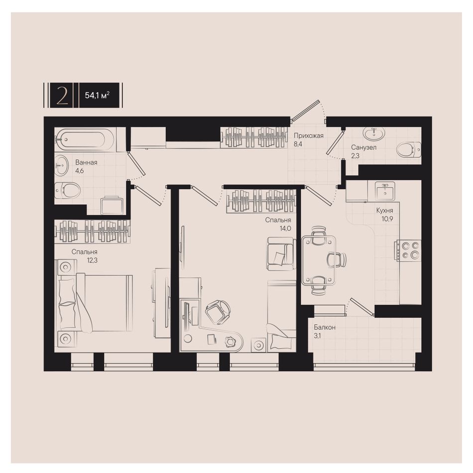2-комнатная — 54,1 м² 8/18 эт. в Эрмитаж