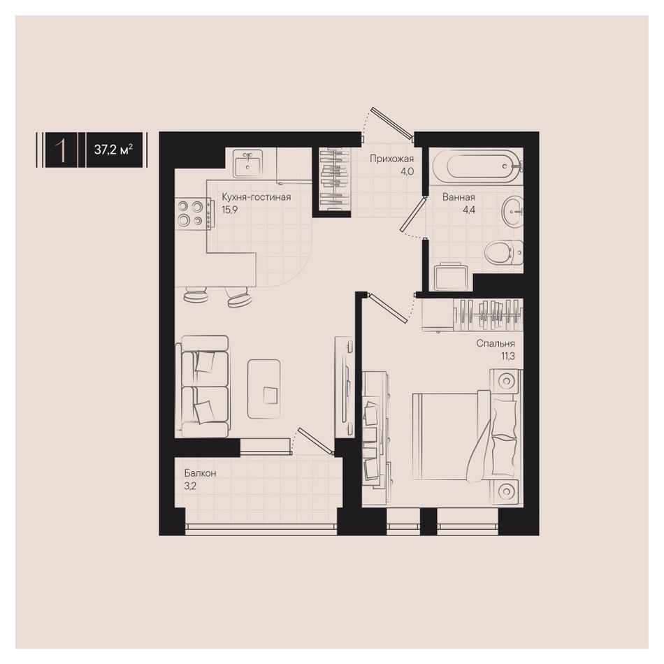 | 1-комн. | 37 - 50 м² | 8,5 - 10,4 млн ₽ |