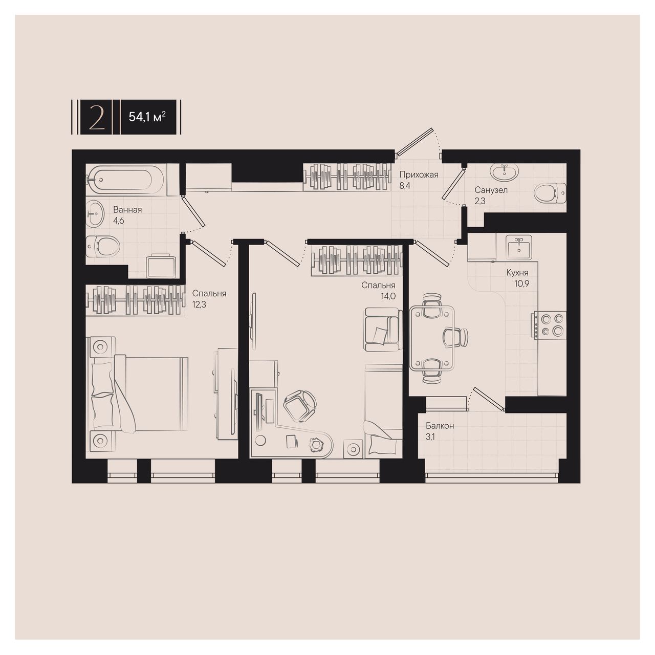 Общая площадь54,1 м²