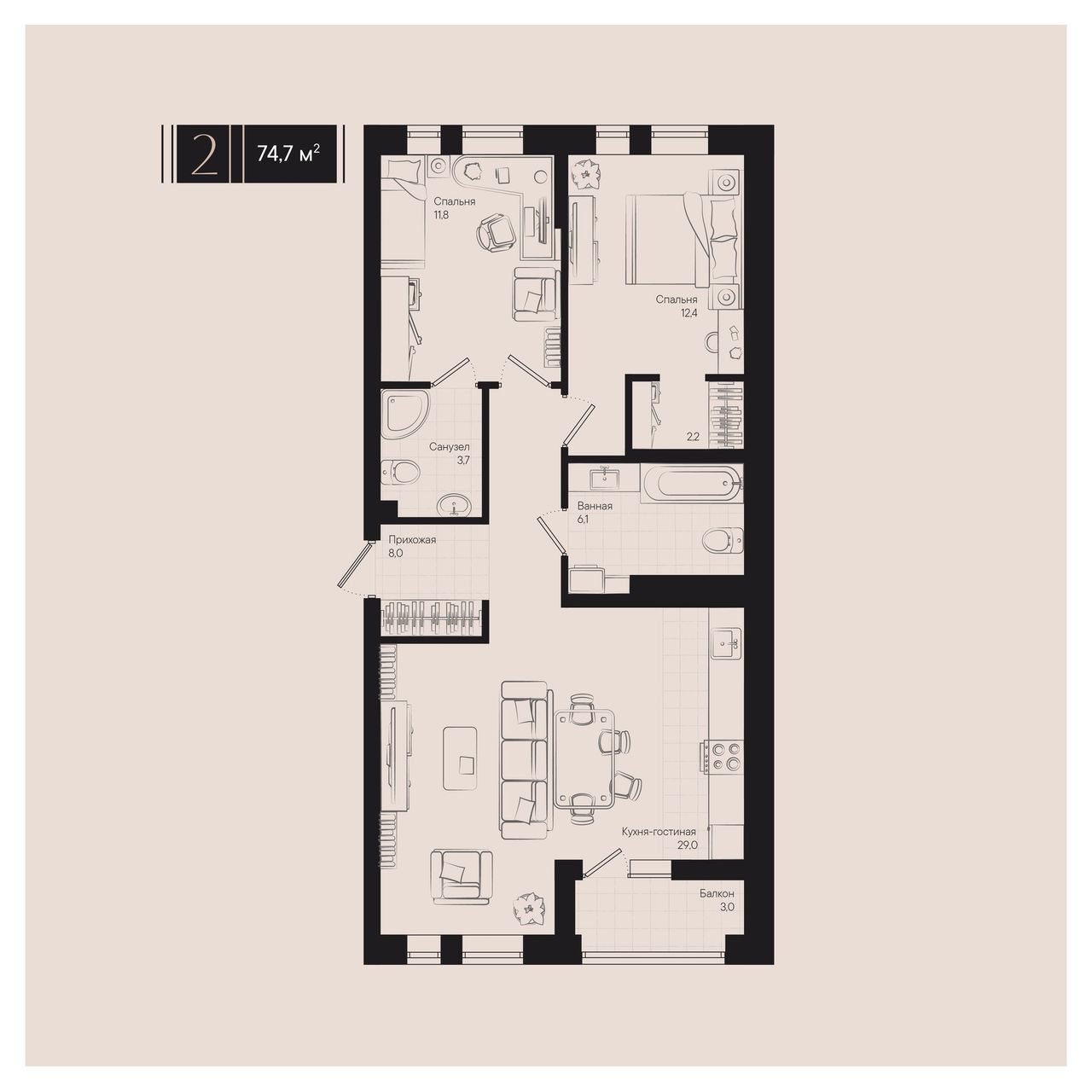Общая площадь74,7 м²