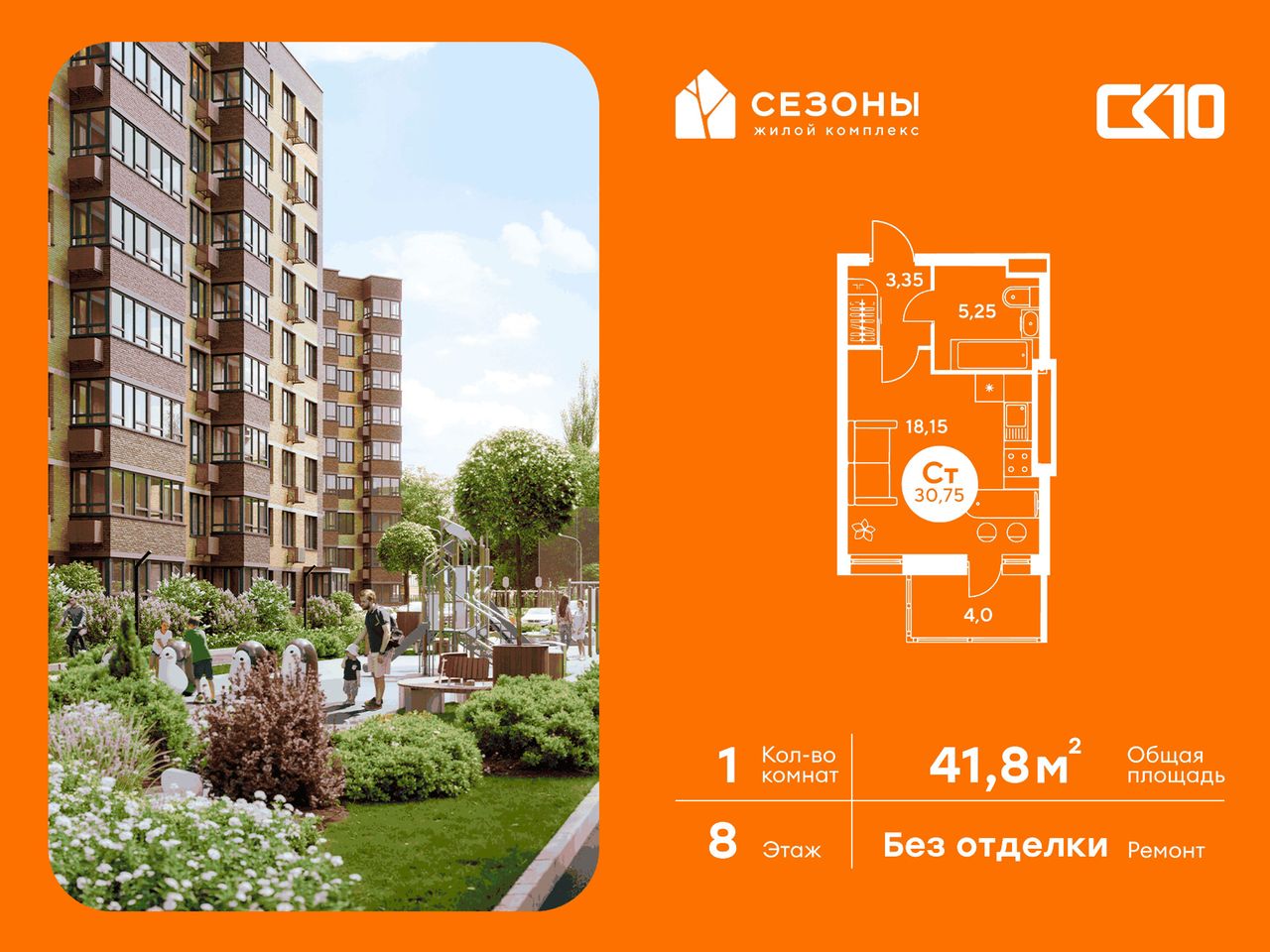 1-комнатная — 41,8 м² 8/25 эт. в Сезоны