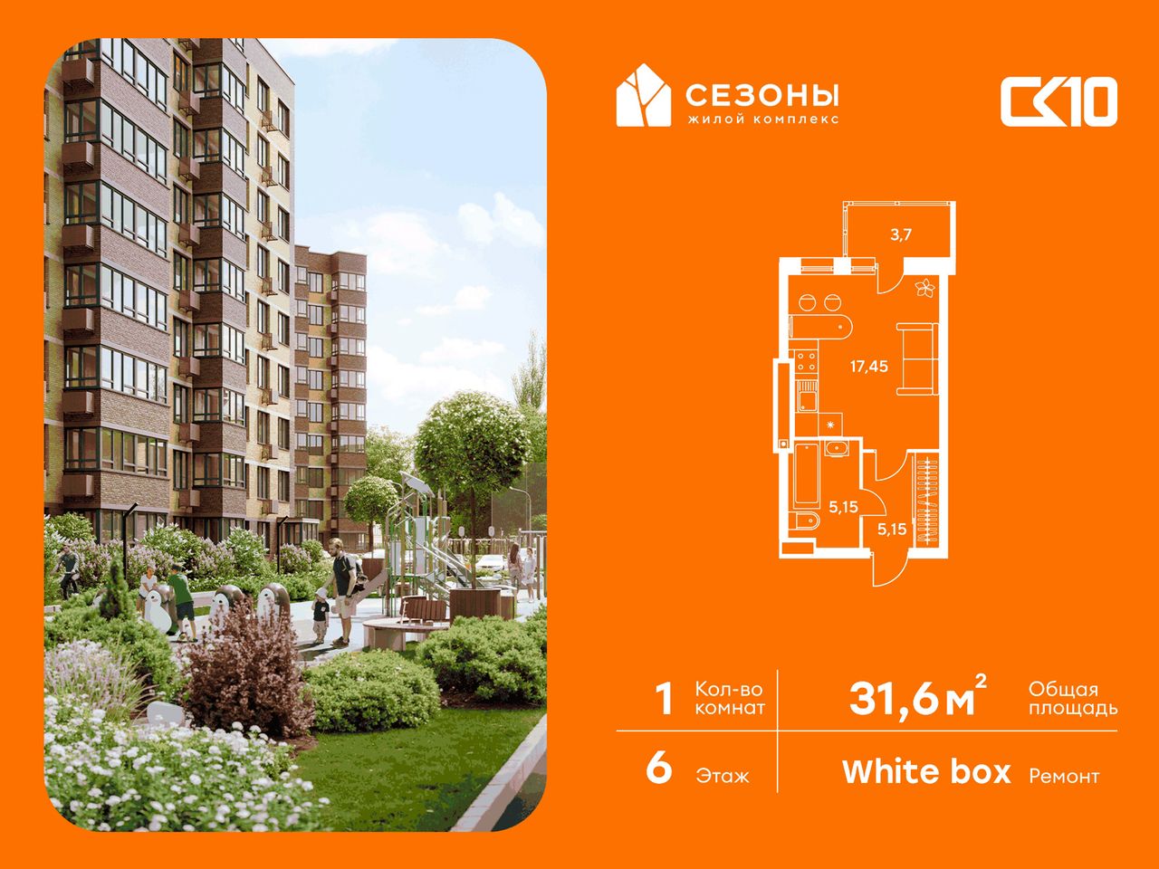 Квартира на 6 этаже в жилом комплексе «СЕЗОНЫ». 1-комнатная квартира площадью 31,55 м². Современное пространство с удобной планировкой, просторной кухней 6,1 м², светлыми жилыми комнатами 11,45 м² и функциональным санузлом [ПлощадиСанузловСовместных] м².